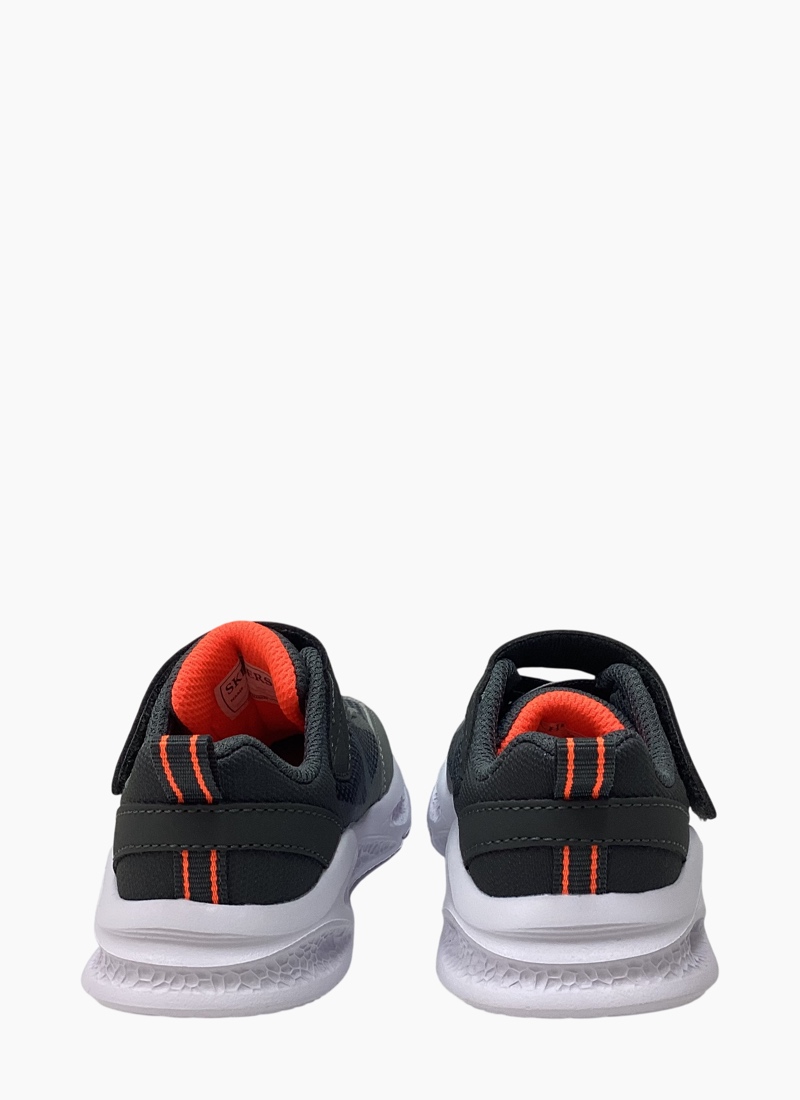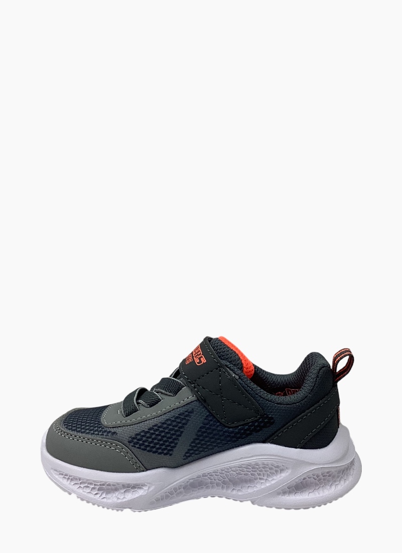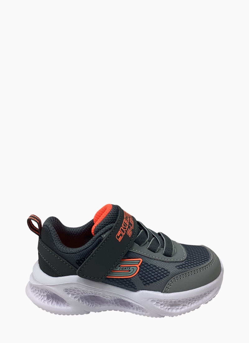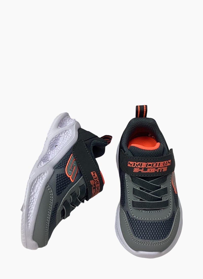 Illuminate your steps in sporty style and comfort with Skechers S-Lights®: Meteor-Lights - Krendox. This stretch-laced design has a mesh and synthetic upper with a Skechers Adaptive Closure for a customized fit, plus a fun light-up midsole.