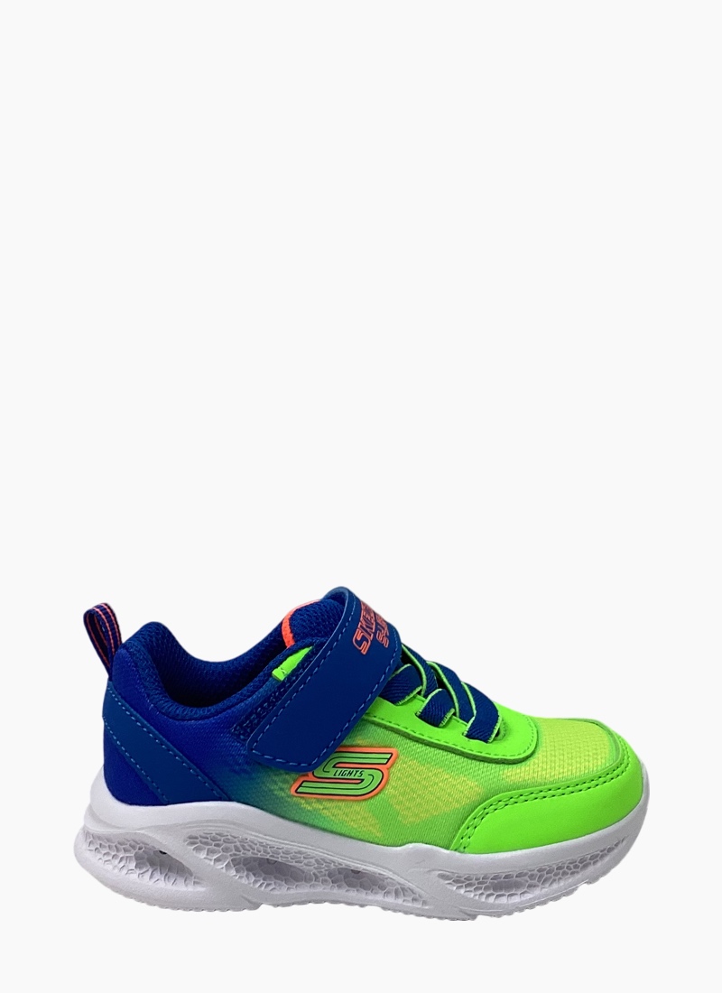 Illuminate your steps in sporty style and comfort with Skechers S-Lights®: Meteor-Lights - Krendox. This stretch-laced design has a mesh and synthetic upper with a Skechers Adaptive Closure for a customized fit, plus a fun light-up midsole.