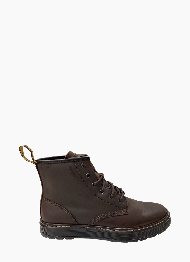 Introducing the Brookline Chukka Boot Dark Brown from Dr Martens. A rugged, refined dark brown leather boot that blends signature Dr Martens character with everyday comfort.