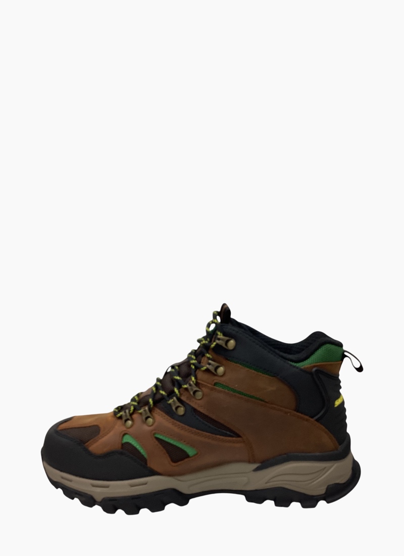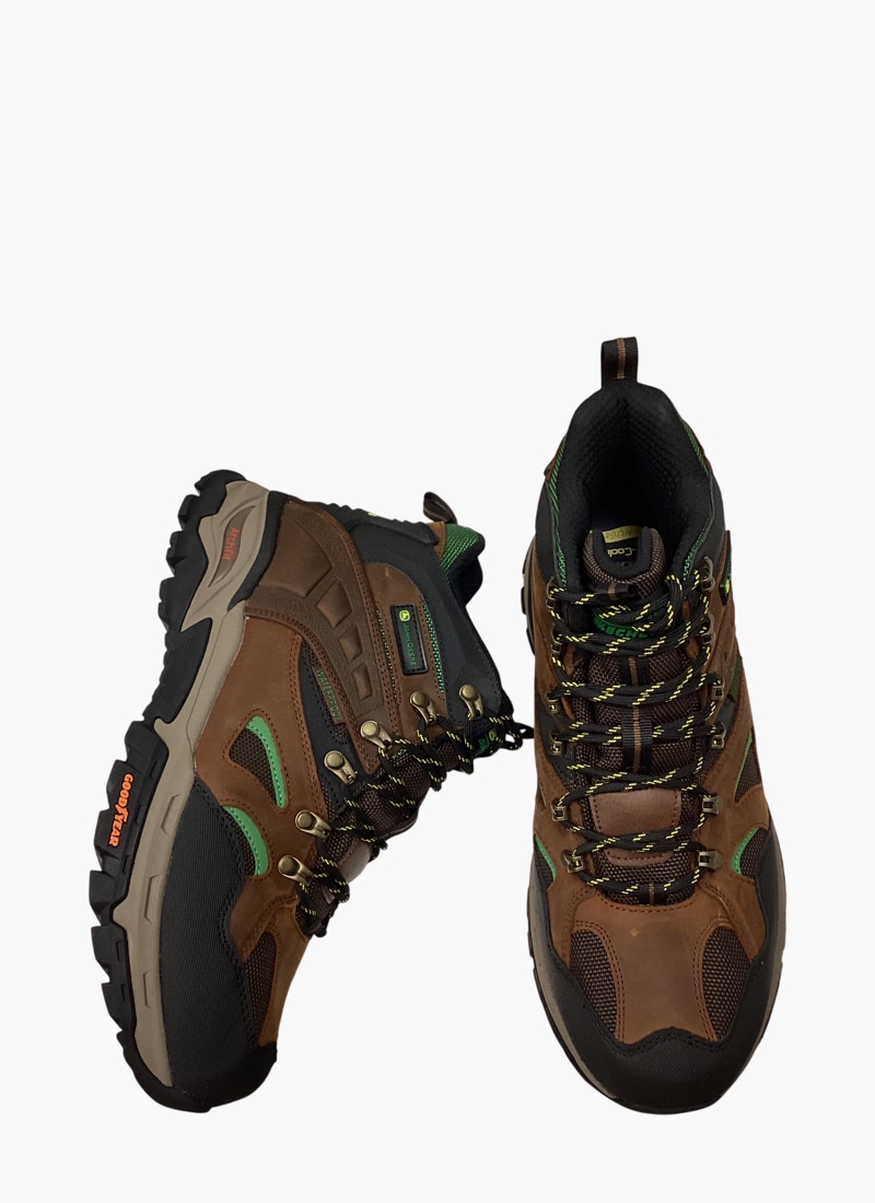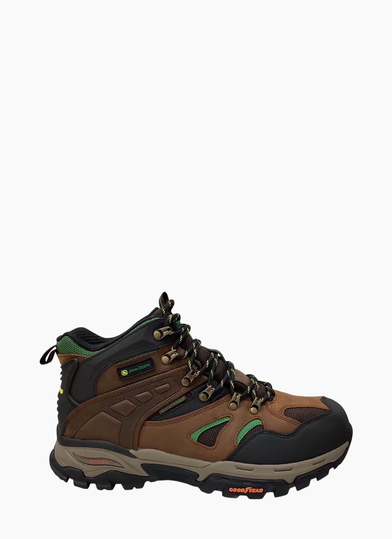 Stay supported in all-day comfort with Skechers x John Deere Waterproof: Arch Fit® Tarver. This waterproof mid-top outdoor trail boot has been granted the APMA Seal of Acceptance. Featuring a lace-up leather and mesh with synthetic overlays, removable Arch Fit® insole, and a durable Goodyear® Rubber Outsole. Two iconic American brands, trusted for quality and innovation, unite to bring uncompromising durability and comfort. Fusing John Deere's rich heritage with Skechers' comfort technologies, this style delivers the perfect blend of style and durability for work, outdoors and the street. Product Features