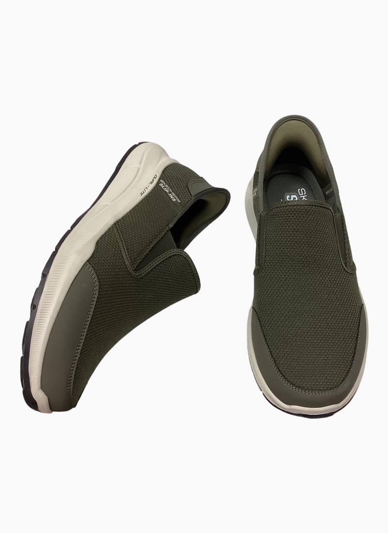 Simply step in and go wearing Skechers Hands Free Slip-ins® Relaxed Fit®: Equalizer 5.0 - Drayze. Designed with our exclusive Heel Pillow™, this laceless slip-on features a yardage mesh upper with synthetic trim and a cushioned Skechers Air-Cooled Memory Foam® comfort insole.