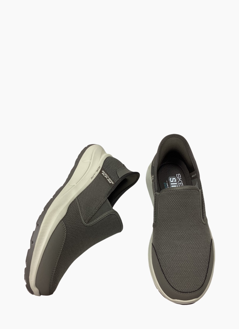 Simply step in and go wearing Skechers Hands Free Slip-ins® Relaxed Fit®: Equalizer 5.0 - Drayze. Designed with our exclusive Heel Pillow™, this laceless slip-on features a yardage mesh upper with synthetic trim and a cushioned Skechers Air-Cooled Memory Foam® comfort insole.