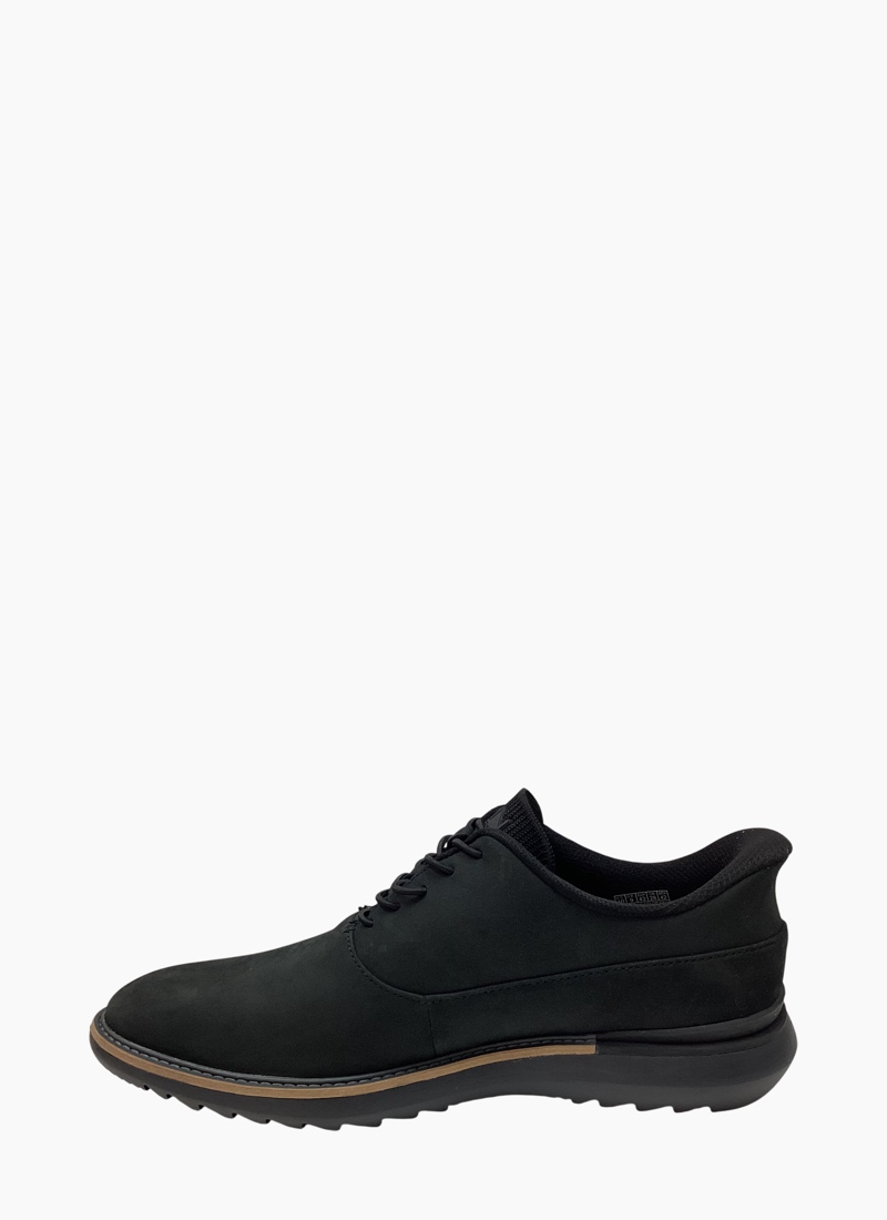 • Classic Oxford style with a leather upper and fixed stretch laces