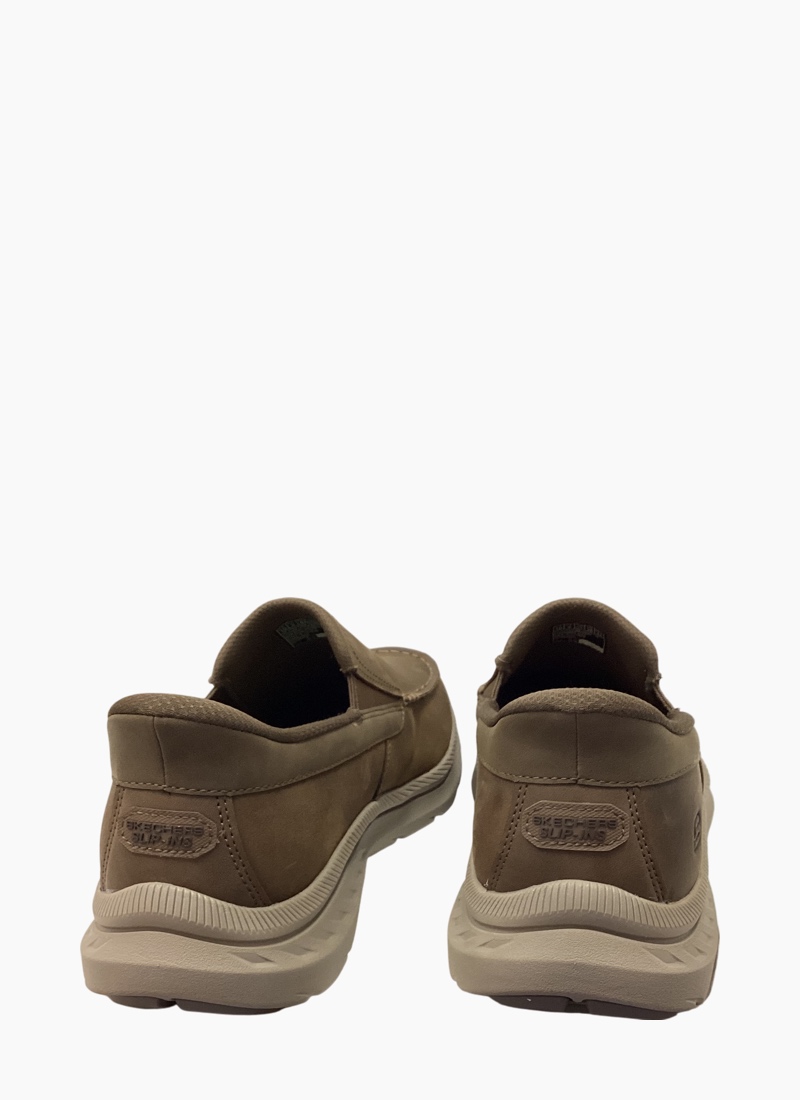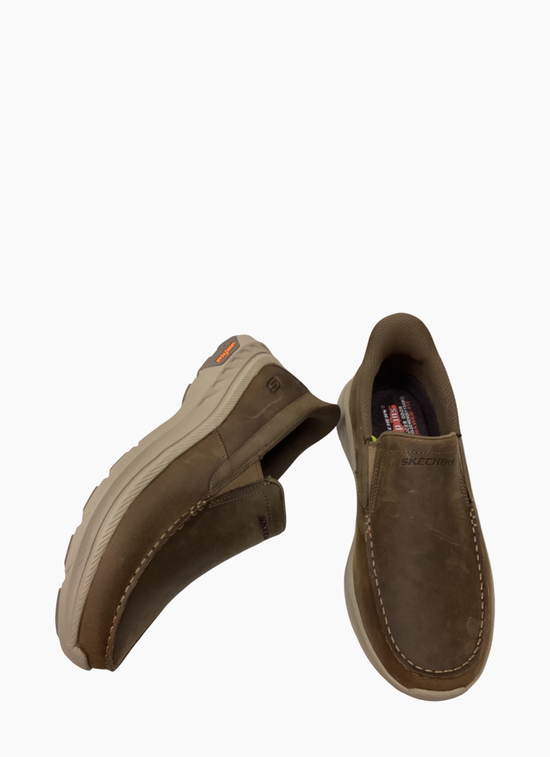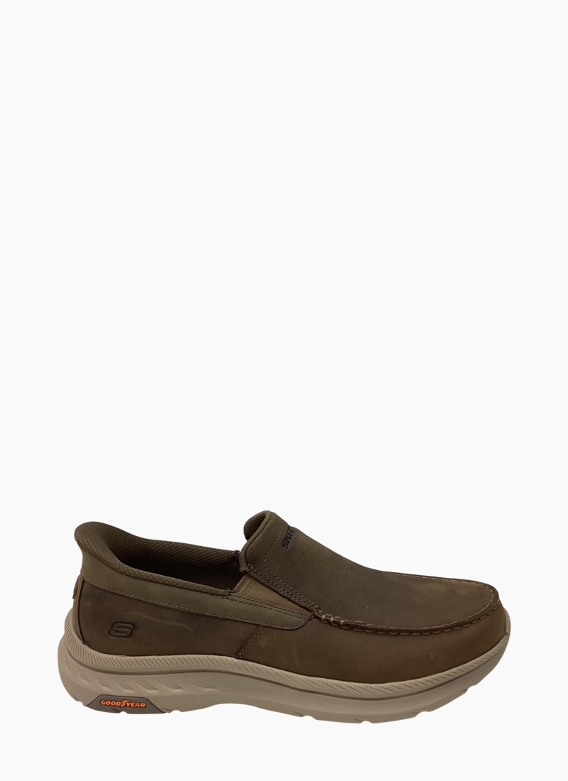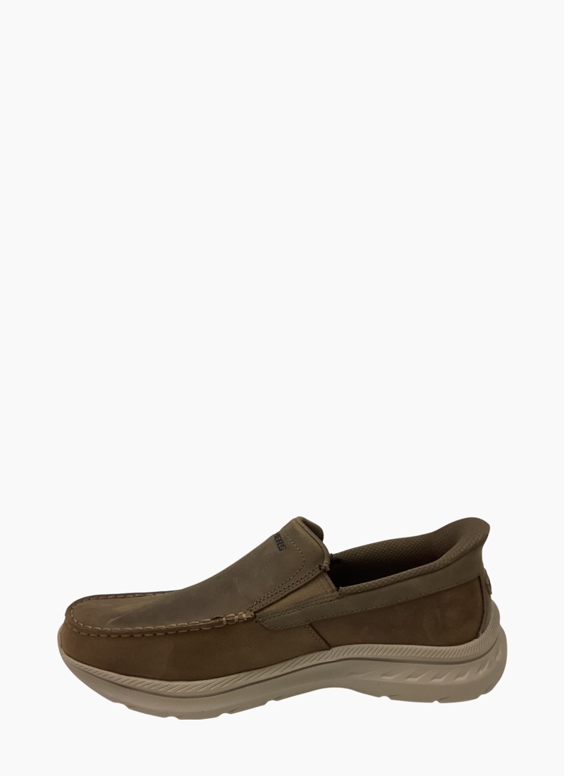 Slip-in to casual comfort wearing Skechers Hands Free Slip-ins® Relaxed Fit®: Pollard - Osgood. Designed with our exclusive Heel Pillow™, this moc toe slip-on loafer features a leather upper with a charcoal-infused Skechers Air-Cooled Memory Foam® insole, Memory Arch™ support, and a rugged anti-slip Goodyear® Rubber Outsole.