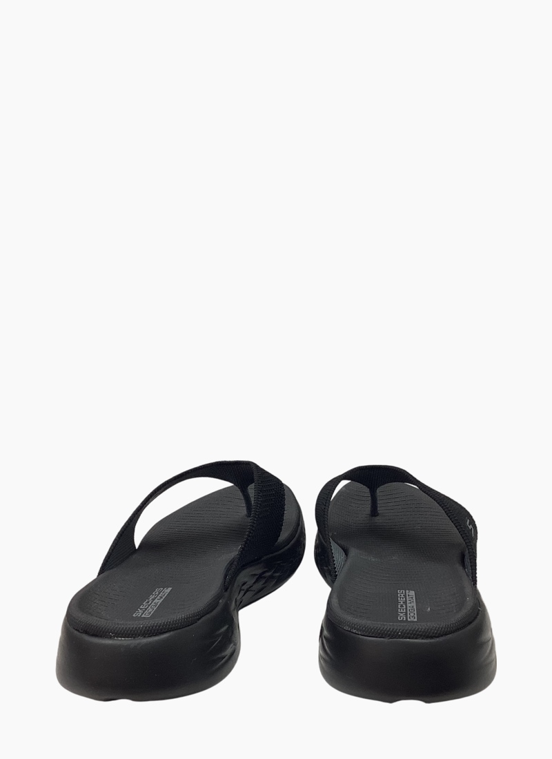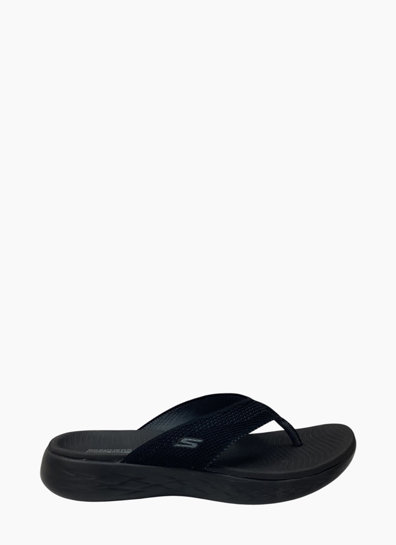 Walk with warm-weather style and comfort wearing Skechers On-the-GO® 600 - Flourish. This sporty 3-point thong sandal features a soft two-toned woven mesh upper, supportive contoured Goga Mat® footbed design and lightweight 5GEN® cushioning.