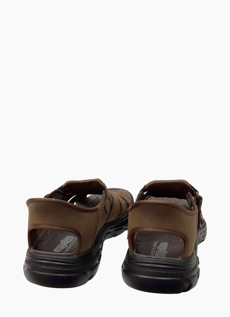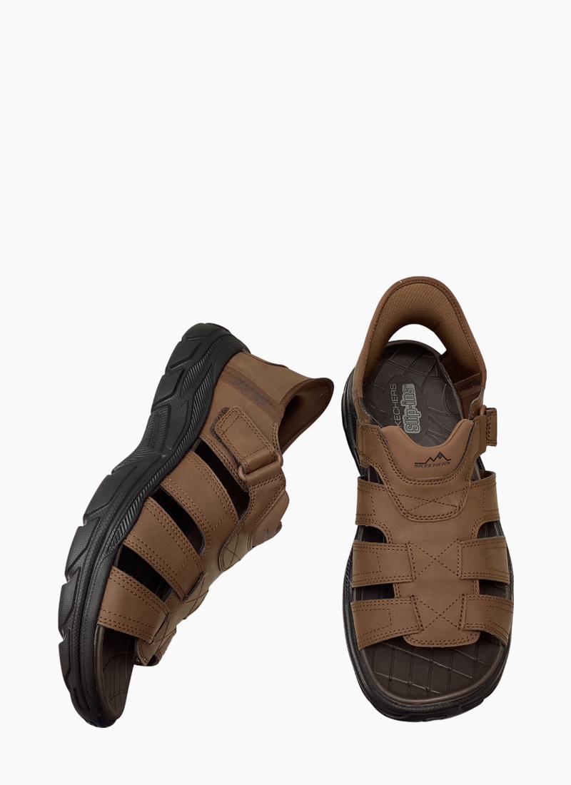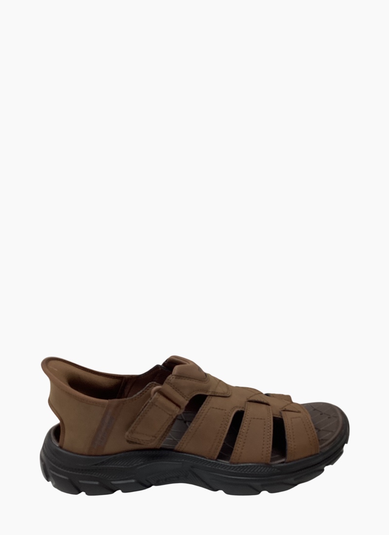A rugged yet refined men's sandal that blends everyday comfort with outdoor-ready durability. Enjoy long walks in supportive comfort wearing Skechers Hands Free Slip-ins® Relaxed Fit®: Revolted - Norvel. Designed with our Heel Pillow™, this fisherman style sandal features a synthetic upper with an adjustable instep strap, back heel piece and a cushioned comfort footbed.