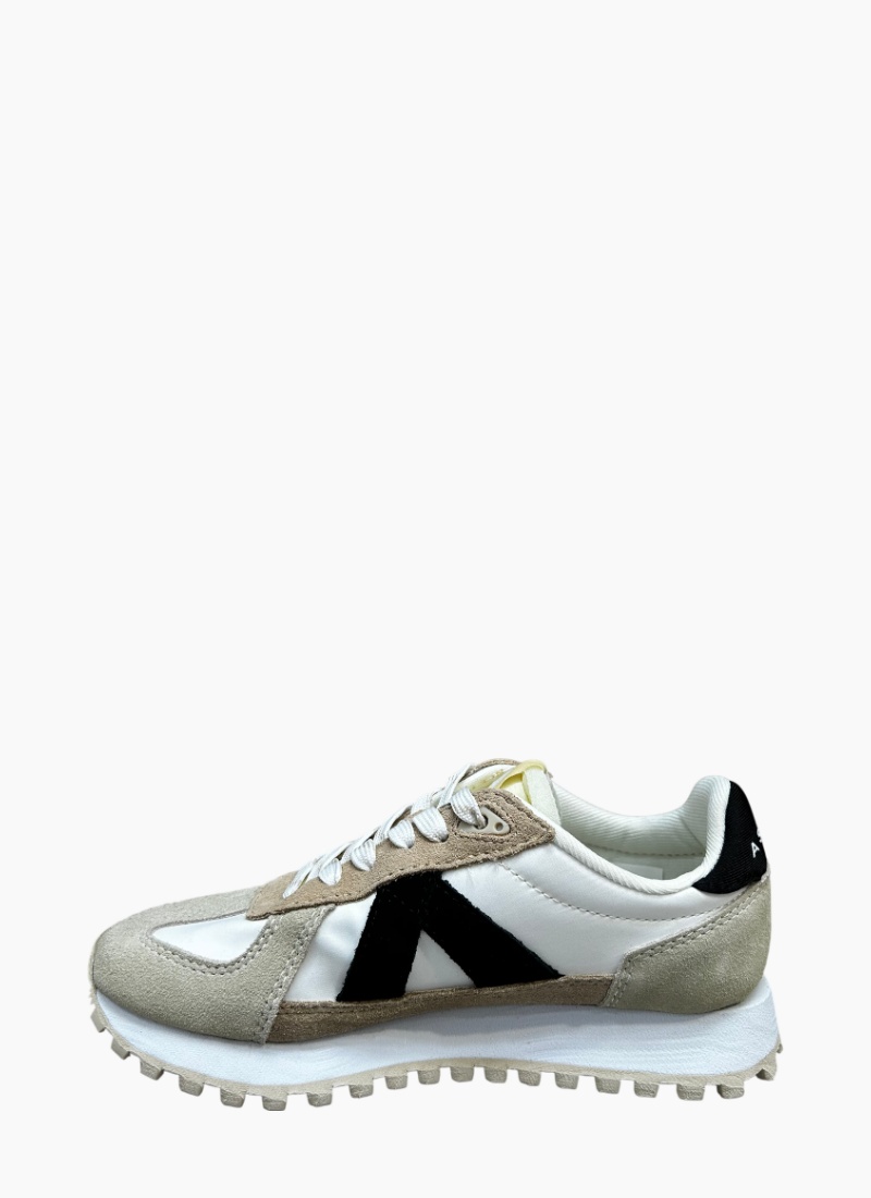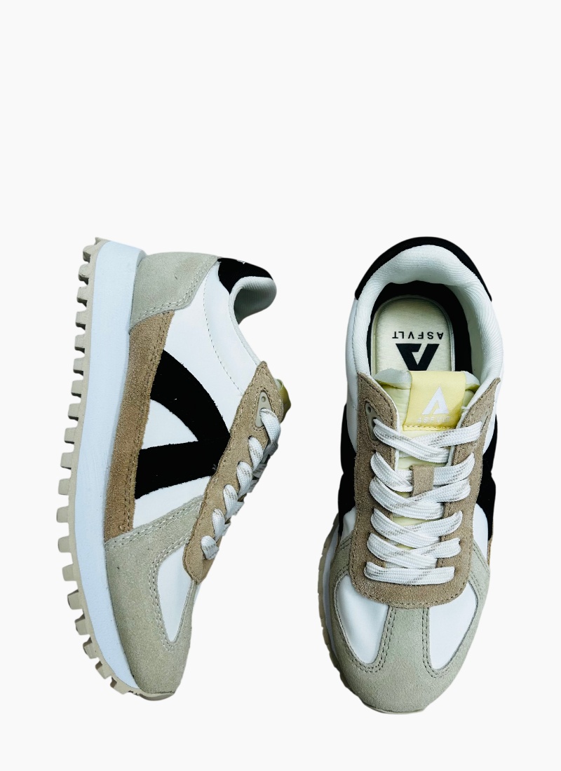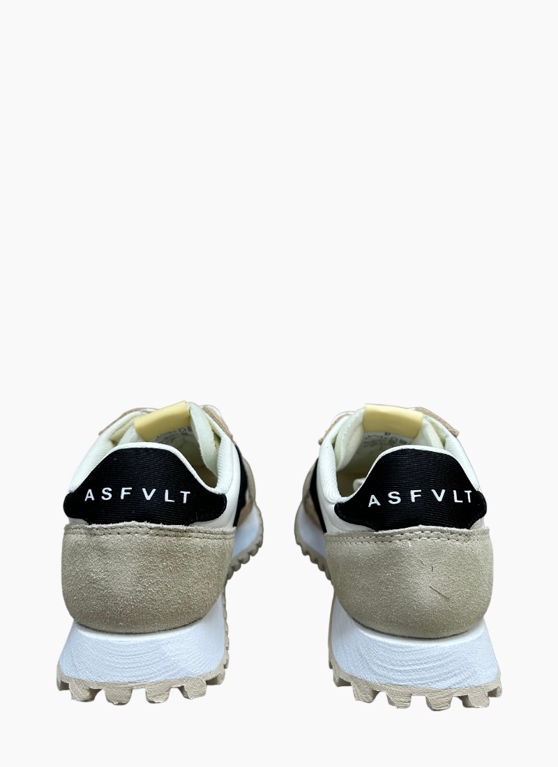 • White and beige colourway with a contrasting black heel tab branded with ASFVLT for a refined, modern look