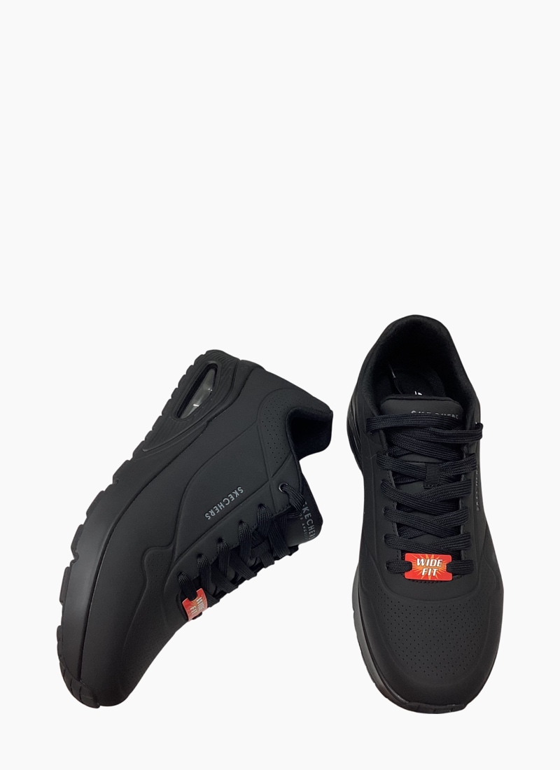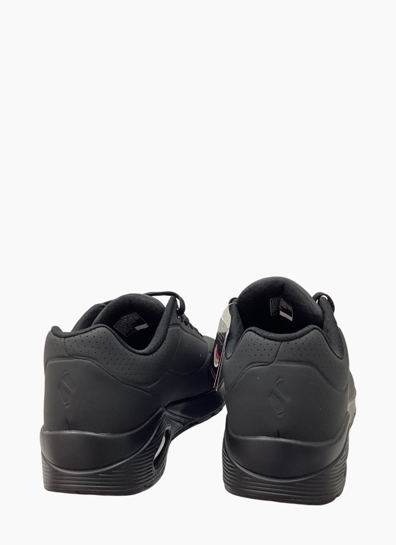 Classic air cushioned style meets updated comfort in the SKECHERS Uno - Stand on Air shoe. Smooth leather-textured synthetic upper in a lace up classic jogger style sneaker with stitching and perforation accents. Air-Cooled Memory Foam insole, visible air cushioned midsole.