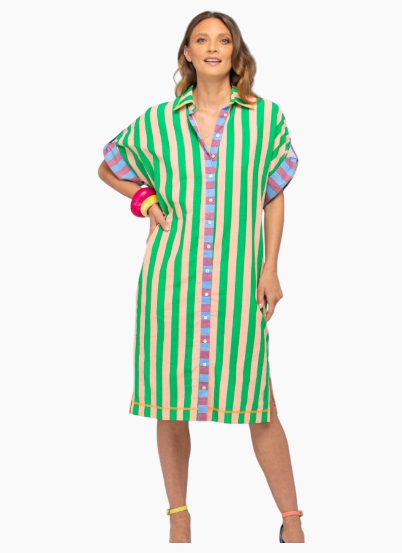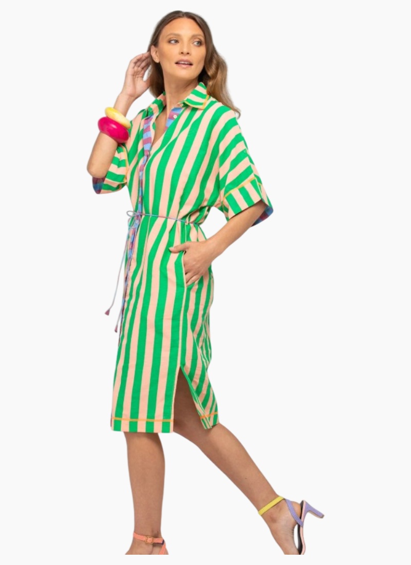 The Boom Shankar Maui Shirt Dress is a sophisticated and versatile dress that will see you through beach to brunch in style!100% cotton, covered front buttons, fabric belt tie, below-knee length, structured collar and adjustable length sleeves with tabs. This piece has been lovingly hand printed by our Indian artisan partners. You may notice irregularities in this print that are part of the design. These characteristics make your garment unique and fabulous. Fit notes: Relaxed fit.