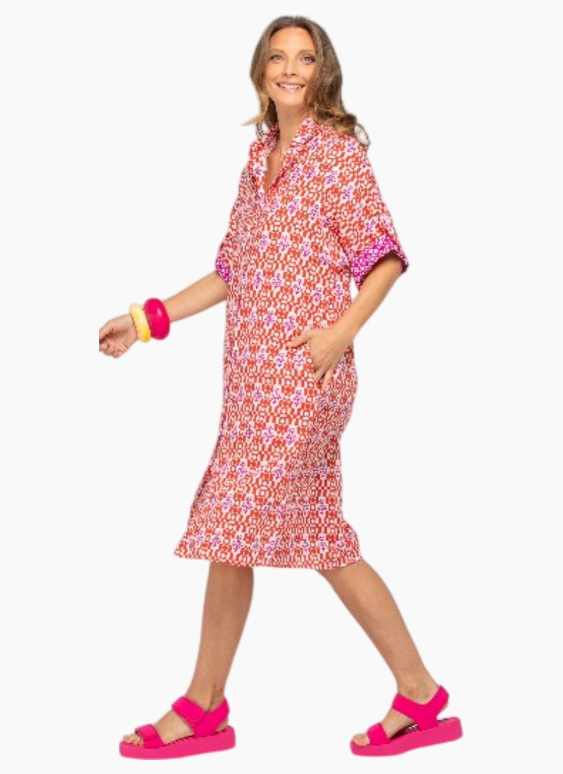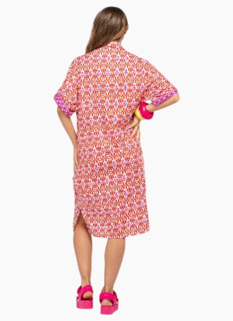 The Boom Shankar Maui Shirt Dress is a relaxed and versatile dress that will see you through beach to brunch in style!100% cotton, covered front buttons, fabric belt tie, structured collar, below knee length, adjustable sleeve length with tabs.