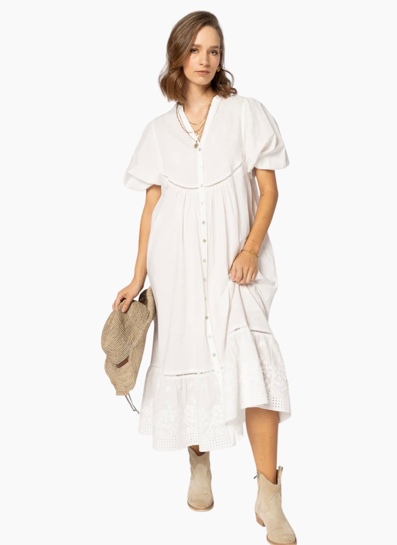 Introducing the Josephine Dress from Drama the Label. This white day dress offers an airy, effortless aesthetic perfect for relaxed weekends and sunny getaways.