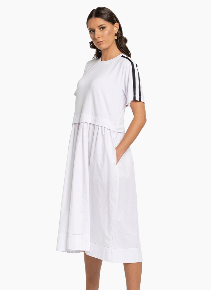 Indulge in the effortless elegance of the That Way Dress. This short sleeve piece boasts comforting fabric and alternating X.LAB Stripes, making it a stylish addition to your wardrobe. The crew neck adds sophistication while providing breathability for a truly luxurious experience.