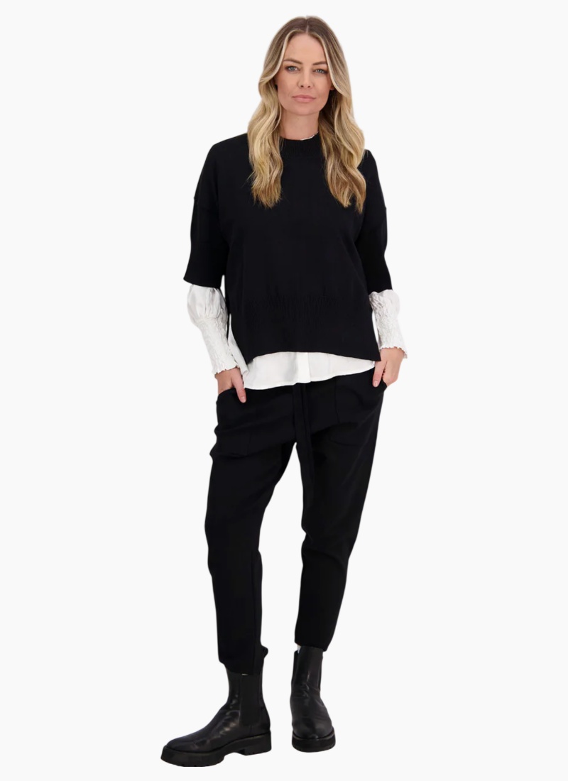 Introducing the Vinnie Knit Top from Briarwood — a modern, boxy black knit designed for effortless layering and everyday polish. - Crafted from a soft
