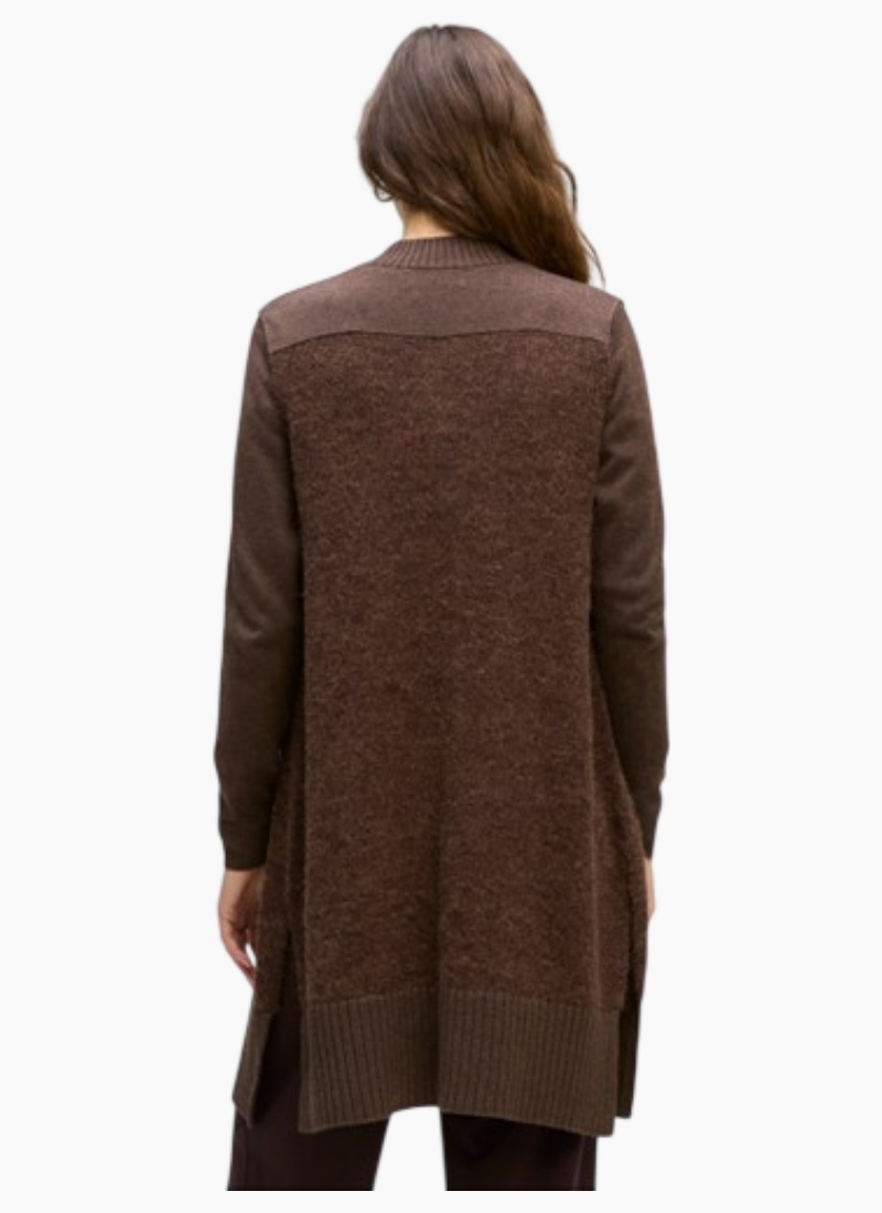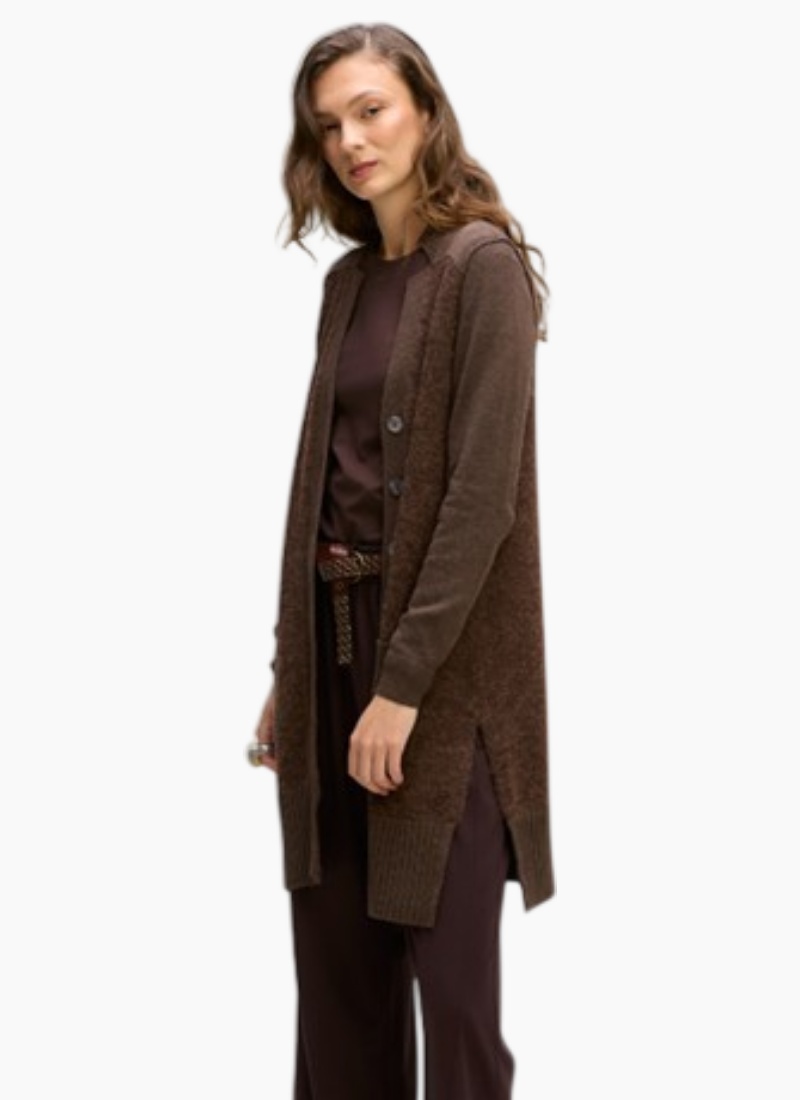 Introducing the Fluffy Detail Cardi Cocoa from LD & Co. This longline cardigan offers soft, cosy layering with refined, textural detailing for everyday elegance.