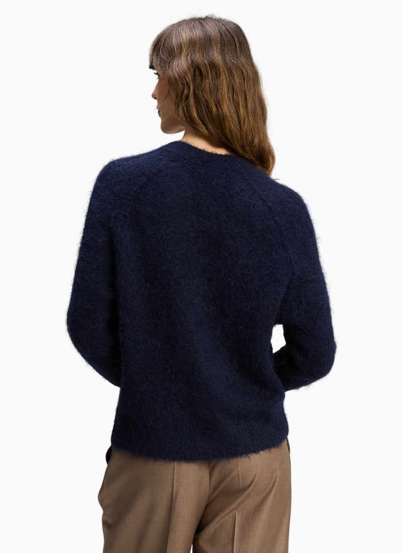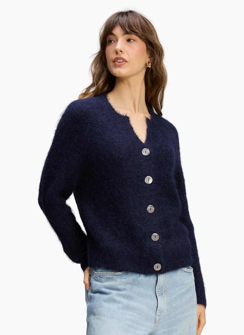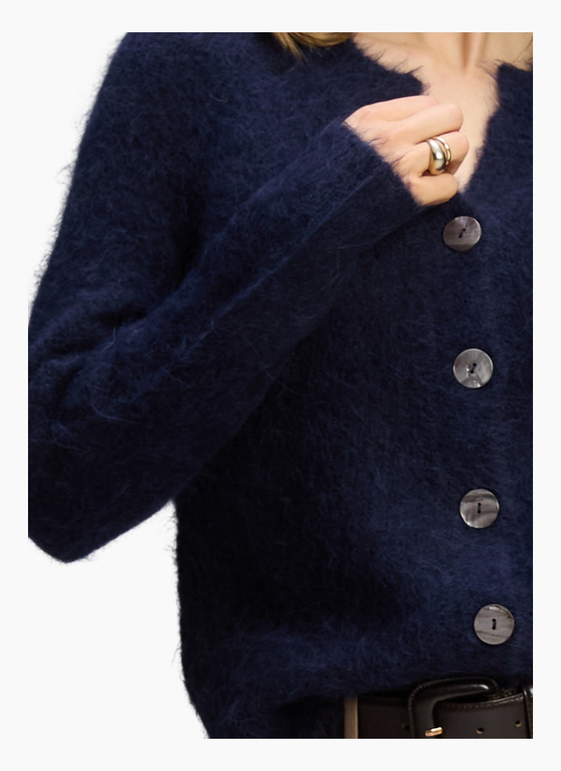 Introducing the Alpaca cardi Midnight from Zaket & Plover. This softly brushed alpaca cardigan in midnight navy brings luxurious warmth and texture to everyday dressing.