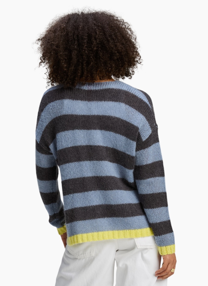 - Distinctive light-blue and charcoal stripe colourway with a lemon-yellow ribbed hem for playful contrast