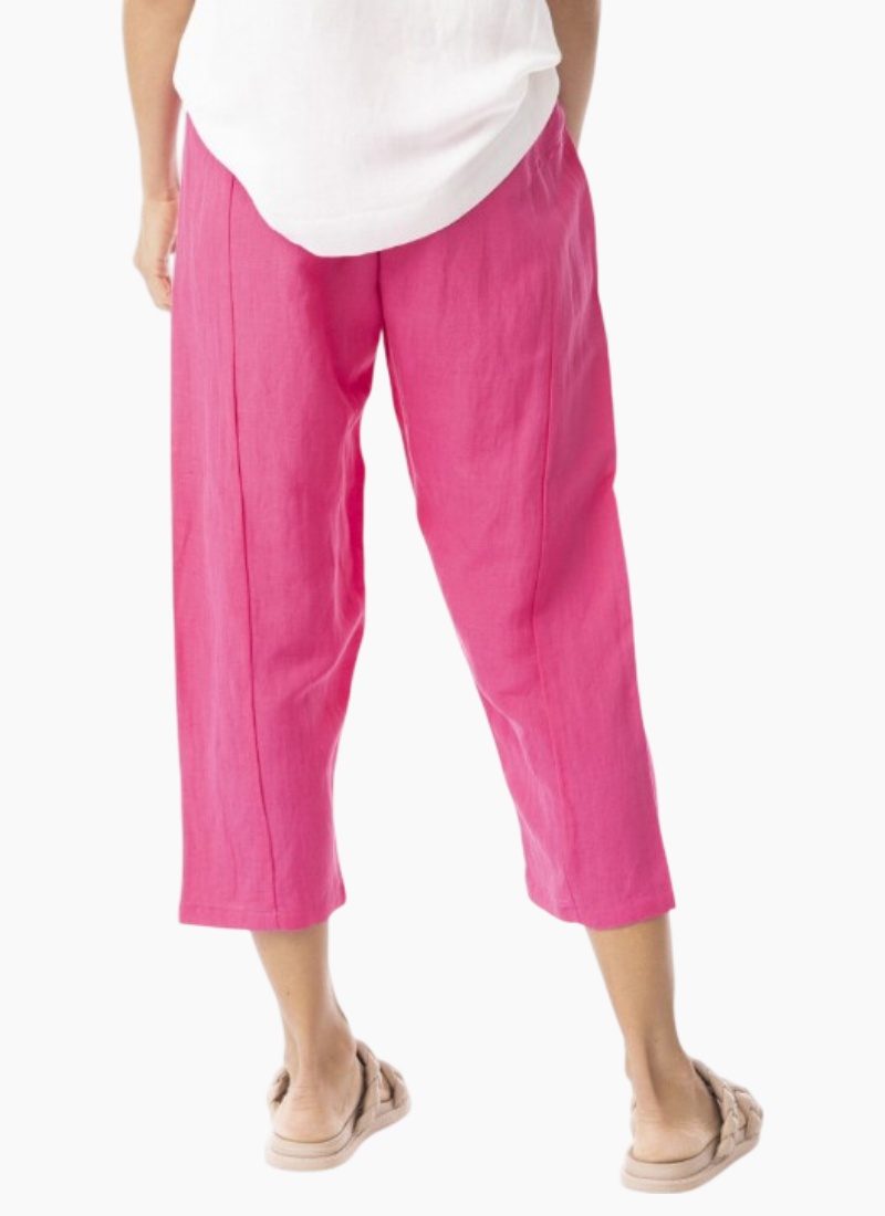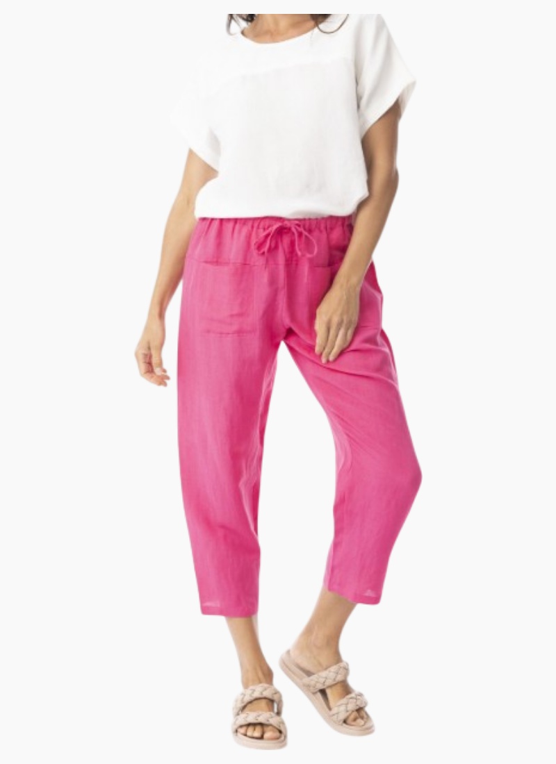 Introducing the Escape Linen Solid Cropped Pant. Effortlessly relaxed and refined, this fuchsia linen pant is a summer wardrobe staple.