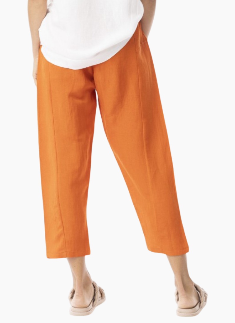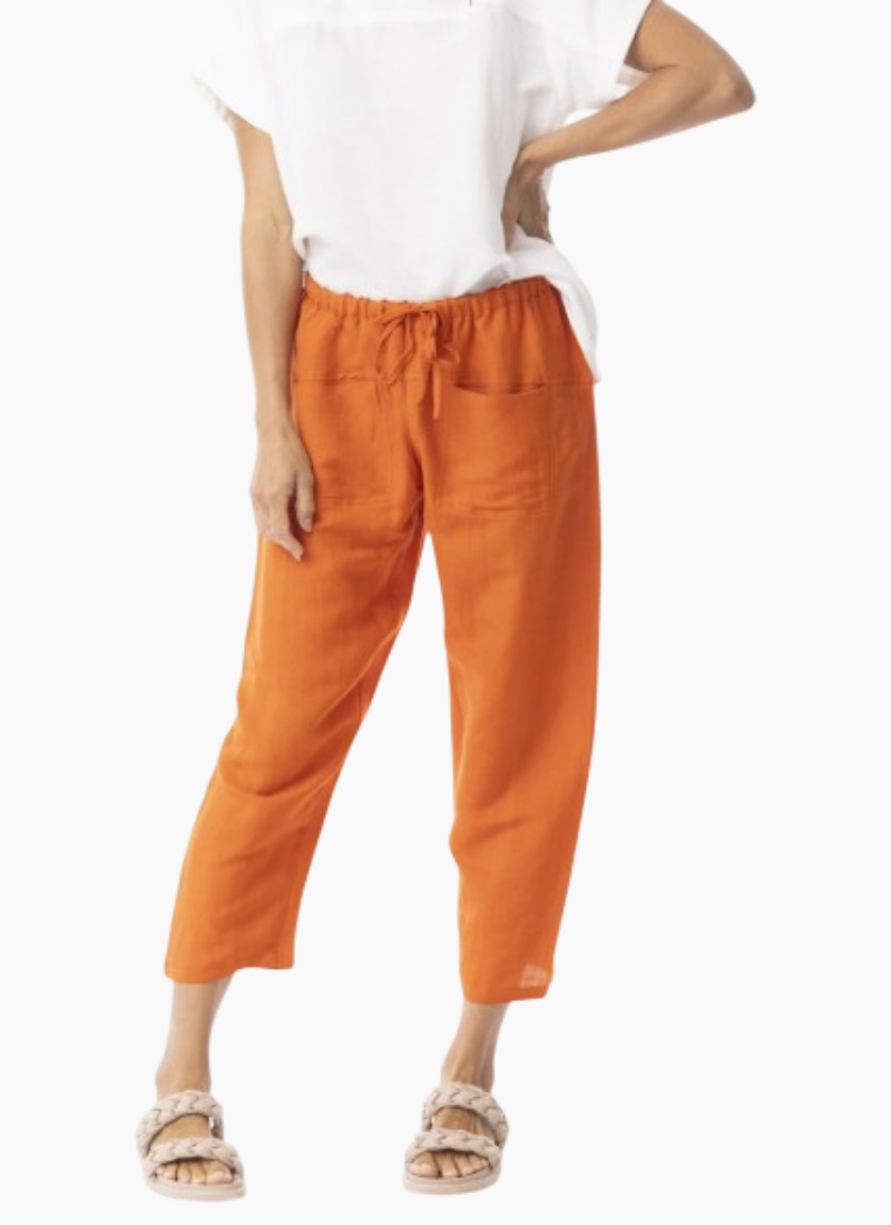 Introducing the Escape Linen Solid Cropped Pant Orange. A relaxed, sun-ready piece that brings easy summer polish to your wardrobe.