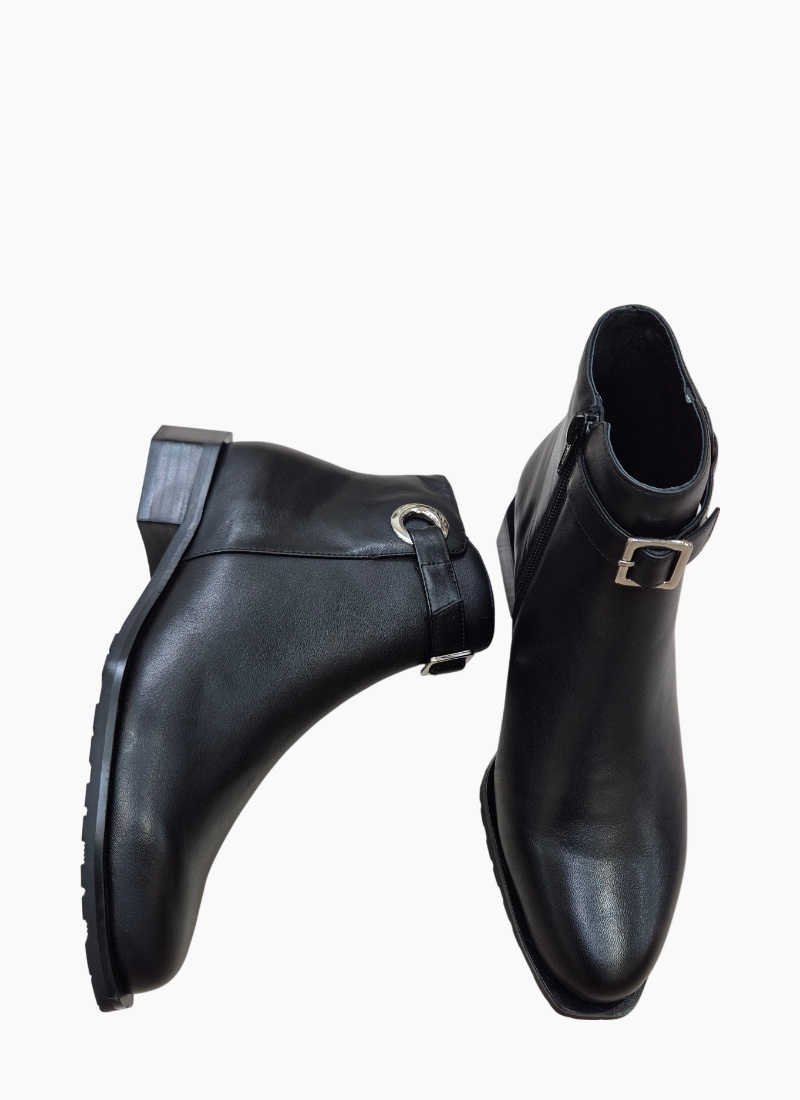 Introducing the Roberta Boot Black from Belle Scarpe. A refined ankle boot that pairs architectural detail with polished leather elegance.