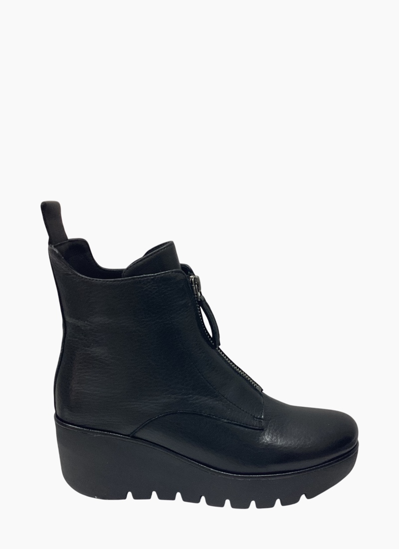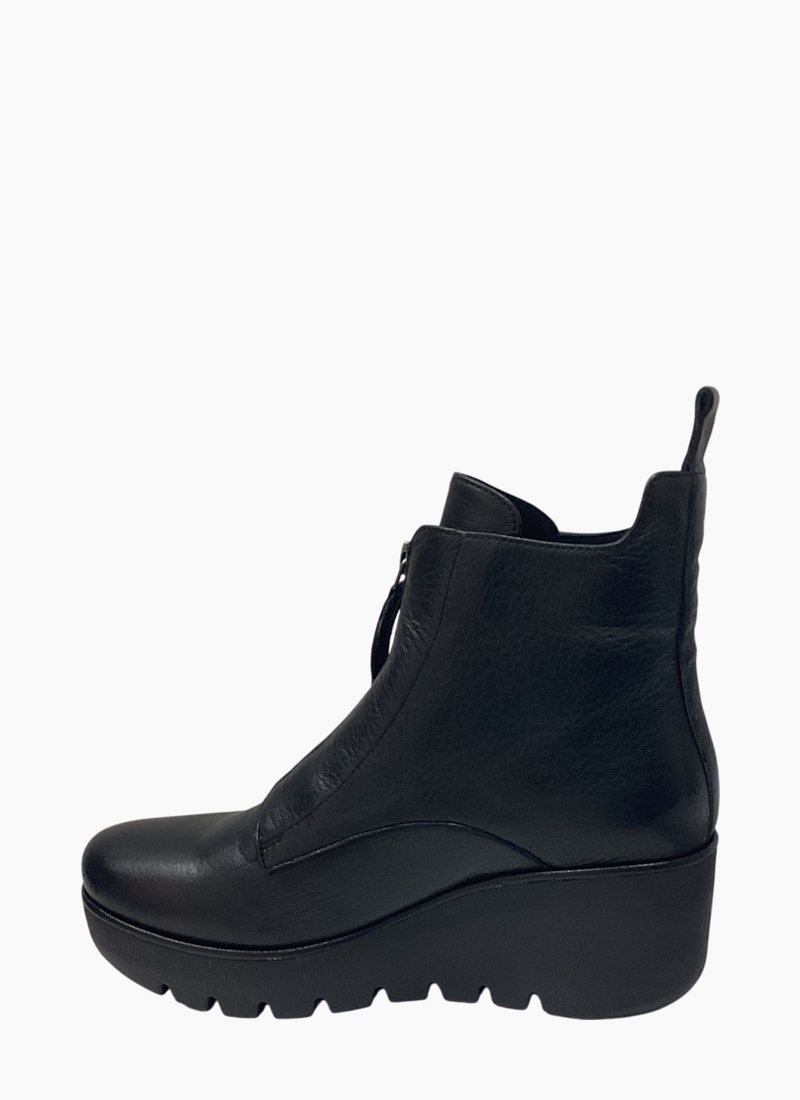 This striking black ankle boot blends modern edge with everyday comfort.