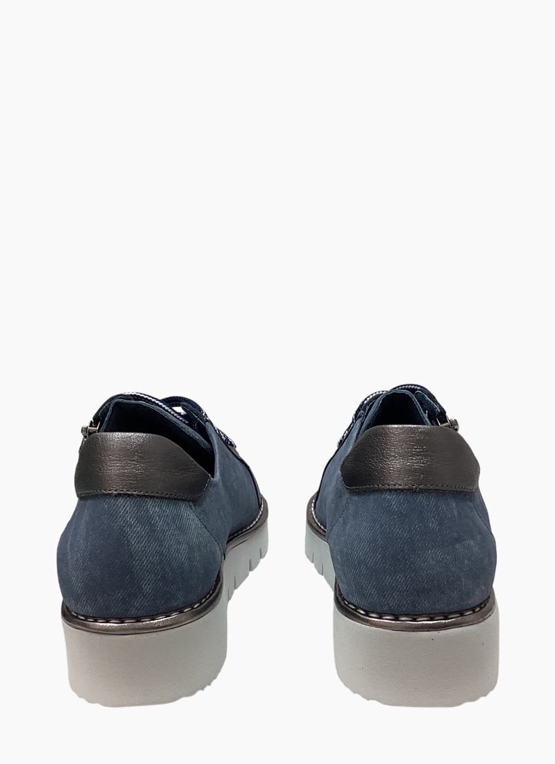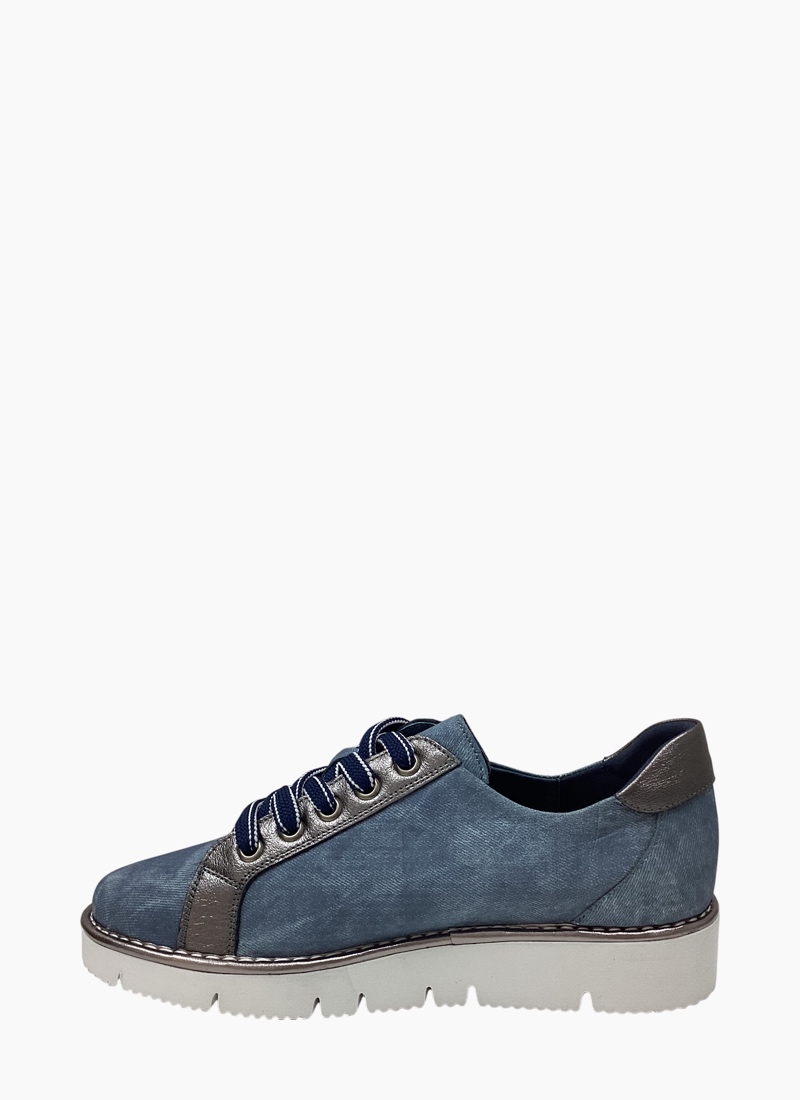 • Versatile sneaker in denim blue that pairs effortlessly with jeans, skirts or casual dresses, adding a polished touch to weekend and travel wardrobes