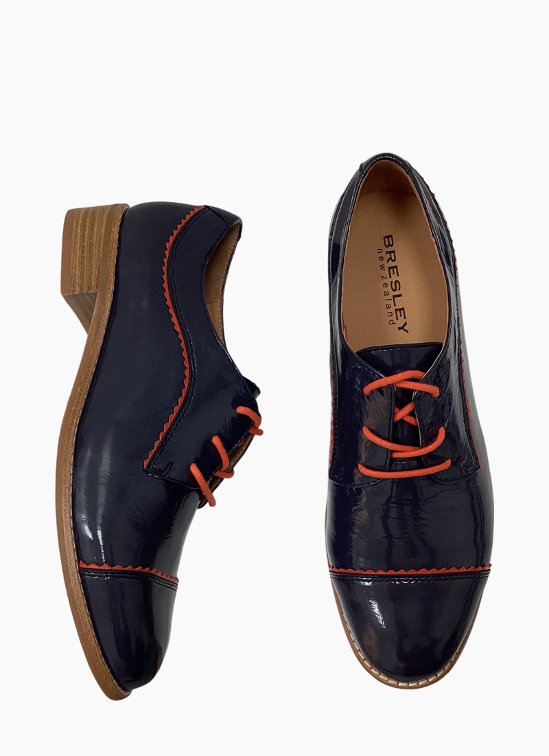 These fancy flats are made to be out on the town! Stunning navy patent leather with the most beautiful coloured accents. This is your new wardrobe necessity. Alpopo by NZ brand Bresley. its on a low flat block heel perfect for the office, brunch with the girls, or every day. Get in quick for this one!