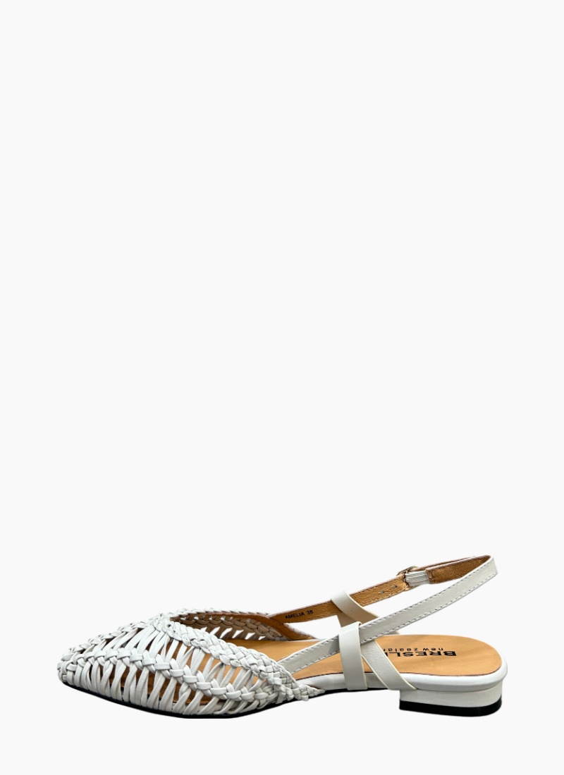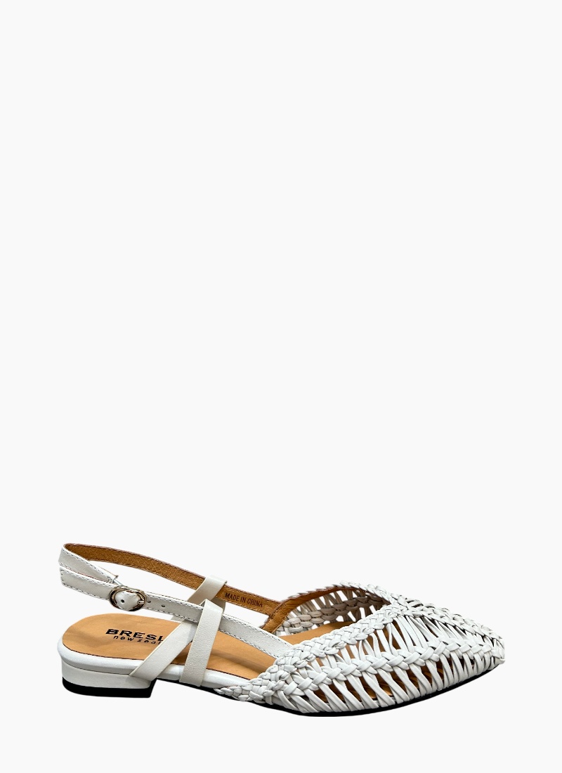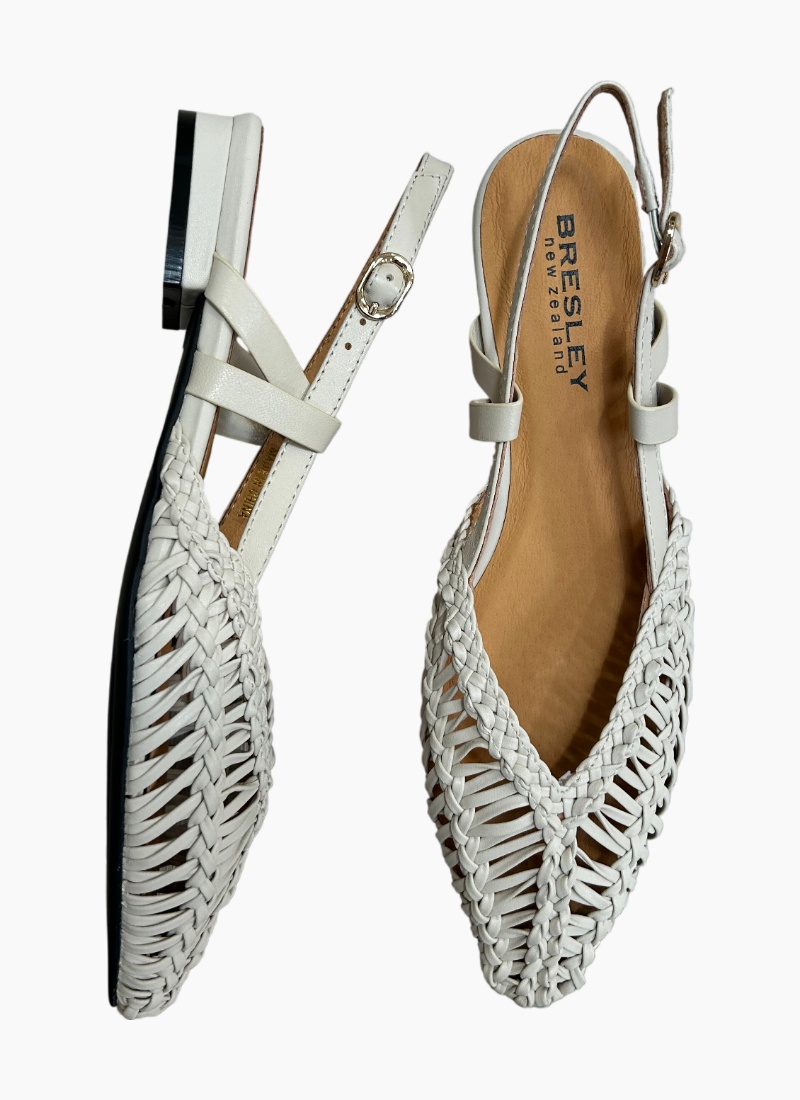 Introducing the Amelia Bone Slingback from Bresley. These elegant flats combine artisanal weaving with modern comfort for a refined everyday staple.