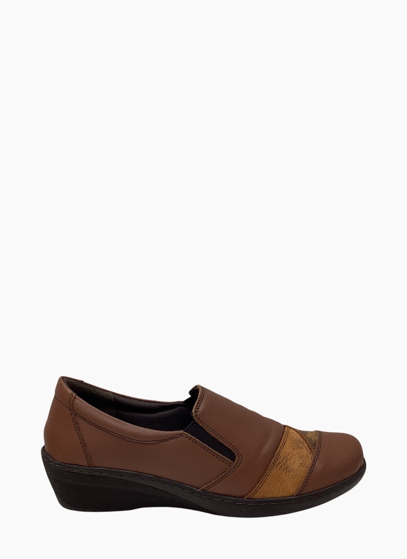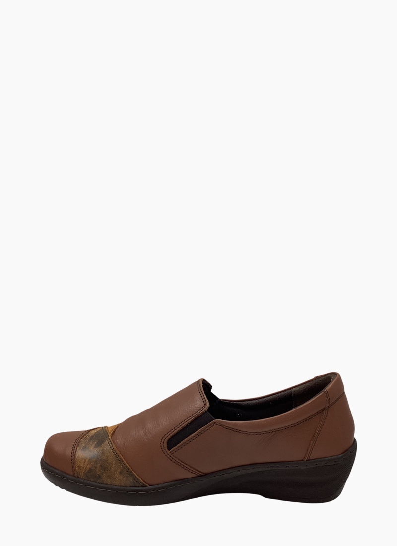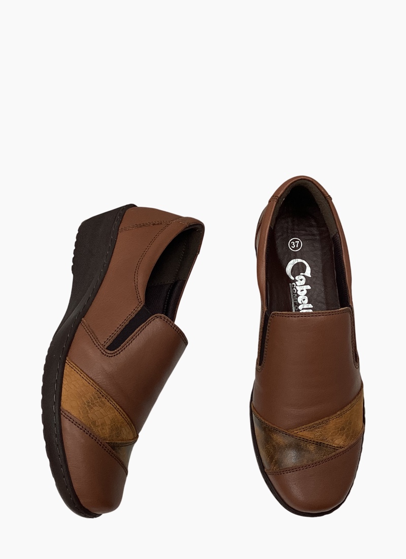 Introducing the Cabello CP736-18 Shoe Tan. This tan leather flat blends everyday comfort with a neat, low-wedge profile for understated style.