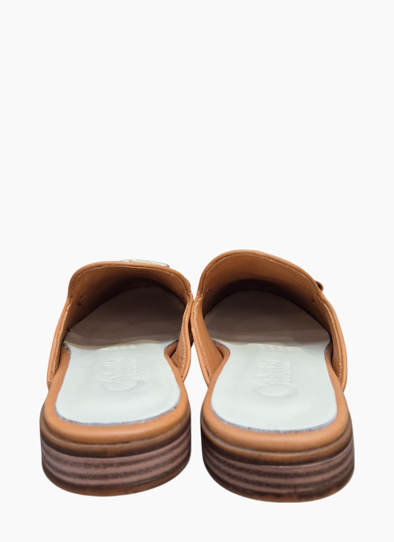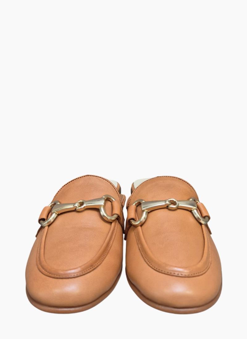 - Soft leather-lined footbed provides gentle support, making these tan mules ideal for everyday styling