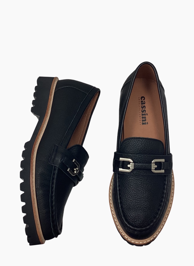 Madele Loafer Black from Cassini. A refined black leather flat that elevates everyday tailoring with a polished, modern edge.