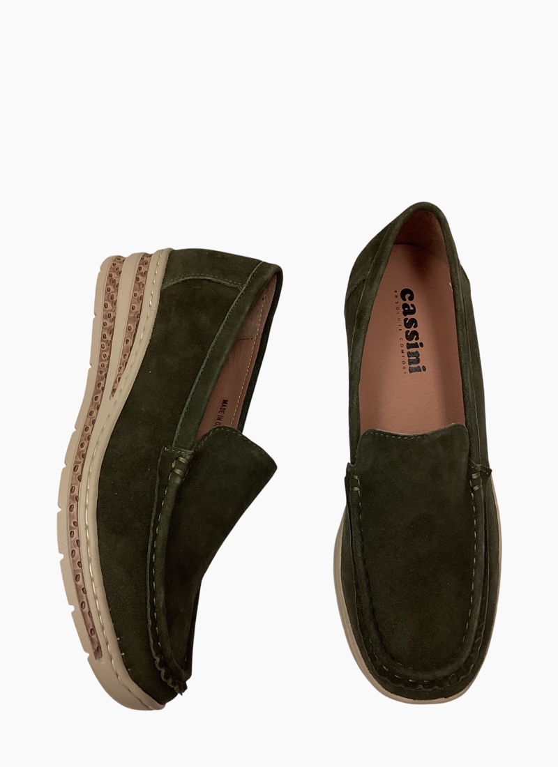 Classic loafer with suede upper and low platform sole for added height while remaining lightweight and easy to walk in. Practical and comfortable for everyday wear.