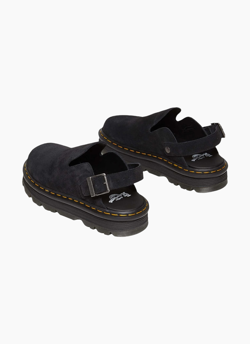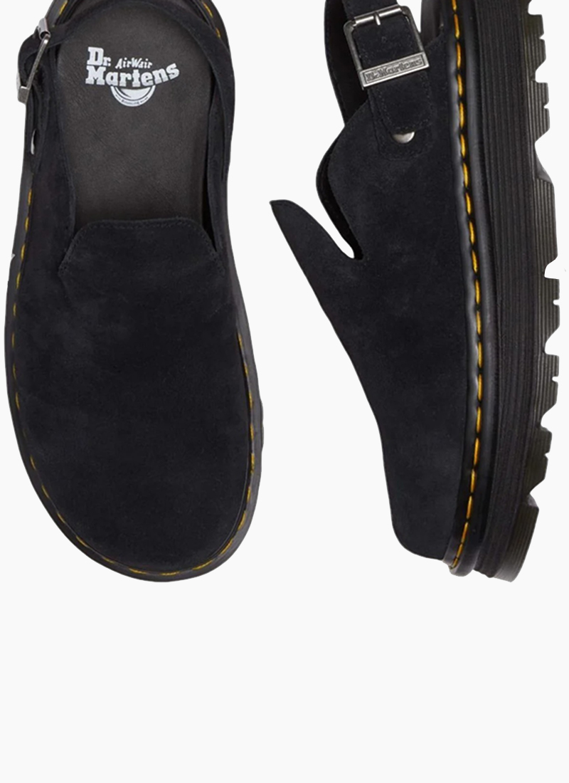 The Zebzag mule is our latest innovation in comfort: built on a hybrid air-cushioned sole that fuses feather-weight EVA with rugged PVC. Crafted from lightweight, versatile suede, they’re designed to be worn however you feel like – in summer or out of the conventional season. The adjustable strap ensures a secure fit, while the welted construction delivers our signature durability. Yellow welt stitching marks the mules as Dr. Martens.