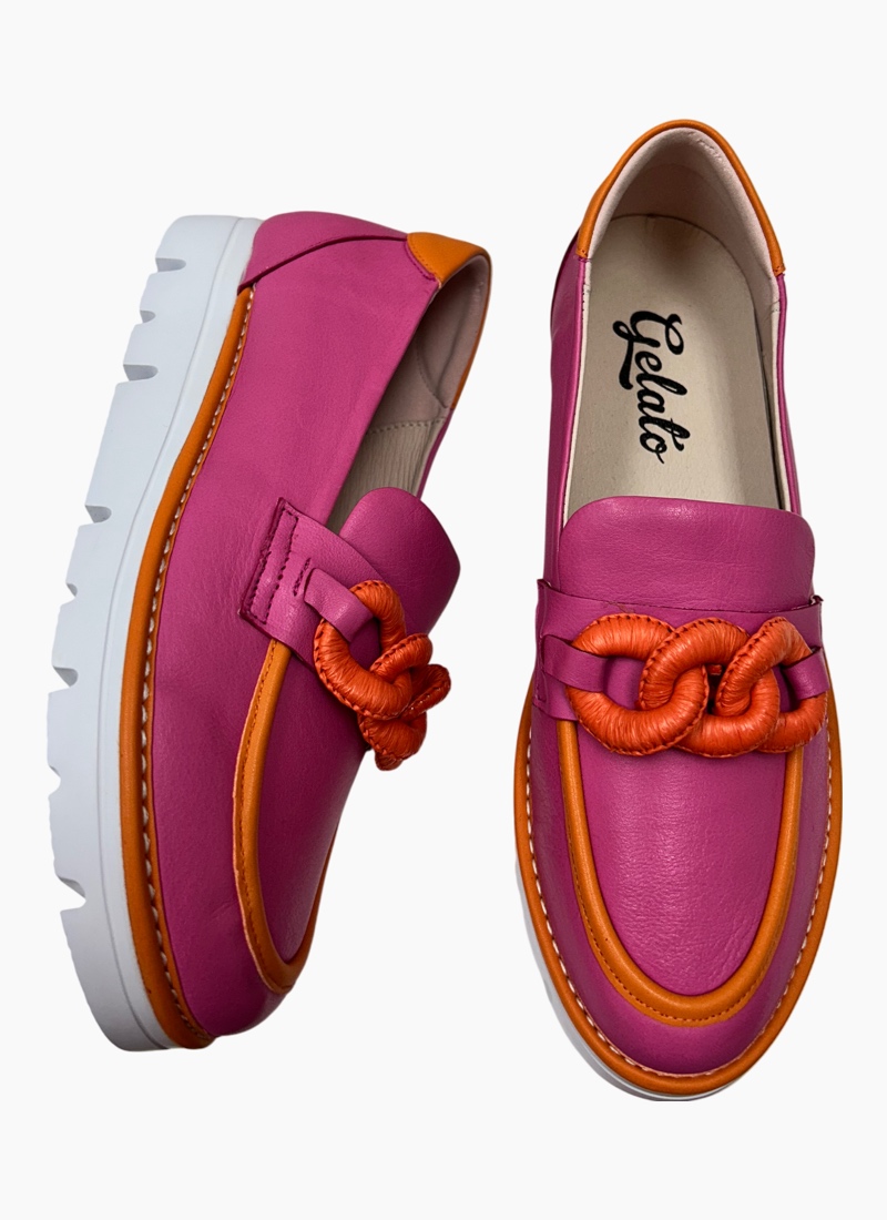Introducing the Eject Loafer Hot Pink/Orange from Gelato. A playful, contemporary loafer that blends bold colour with elevated comfort.