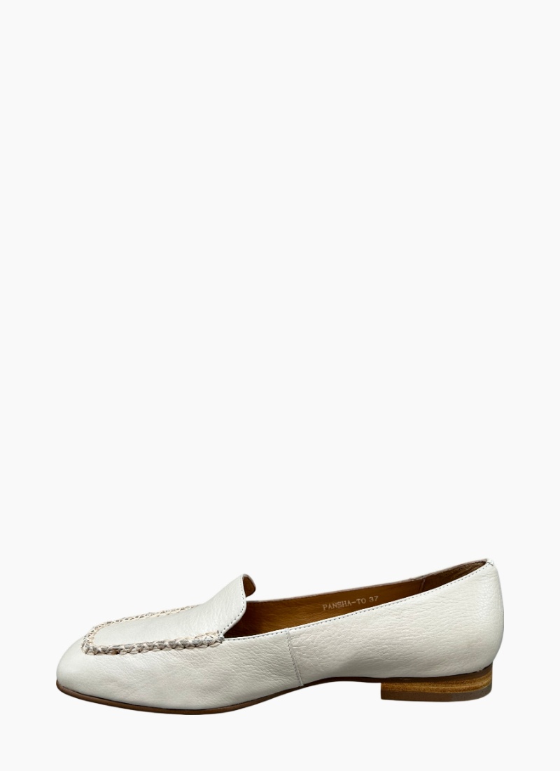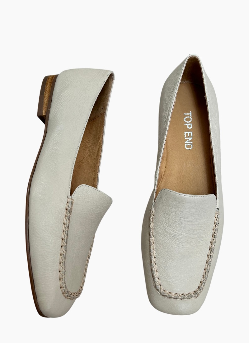Introducing the Pansha Loafer Vanilla from Top End. A refined leather flat that pairs classic loafer lines with a soft, modern finish.