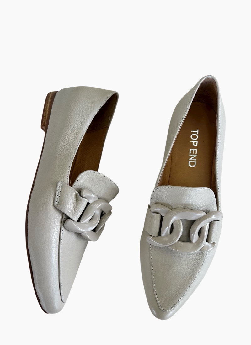 Introducing the Socoros Loafer Almond from Top End. This refined almond-coloured leather flat pairs a polished silhouette with everyday comfort.