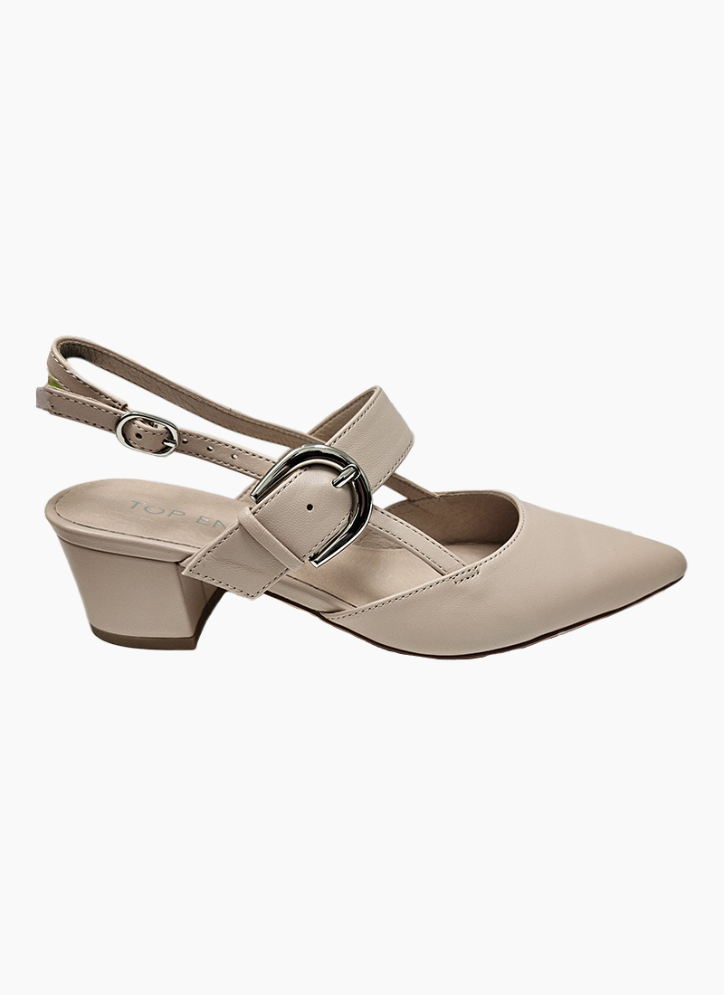 These elegant leather heels by Top End are a sophisticated must-have for any wardrobe. Asten provides a polished, refined finish to your look. The pointed toe adds a sleek touch, while the buckled arch strap and slim heel strap offer a secure and stylish fit. Pair them with your favorite dresses or tailored pants for an effortlessly chic ensemble.