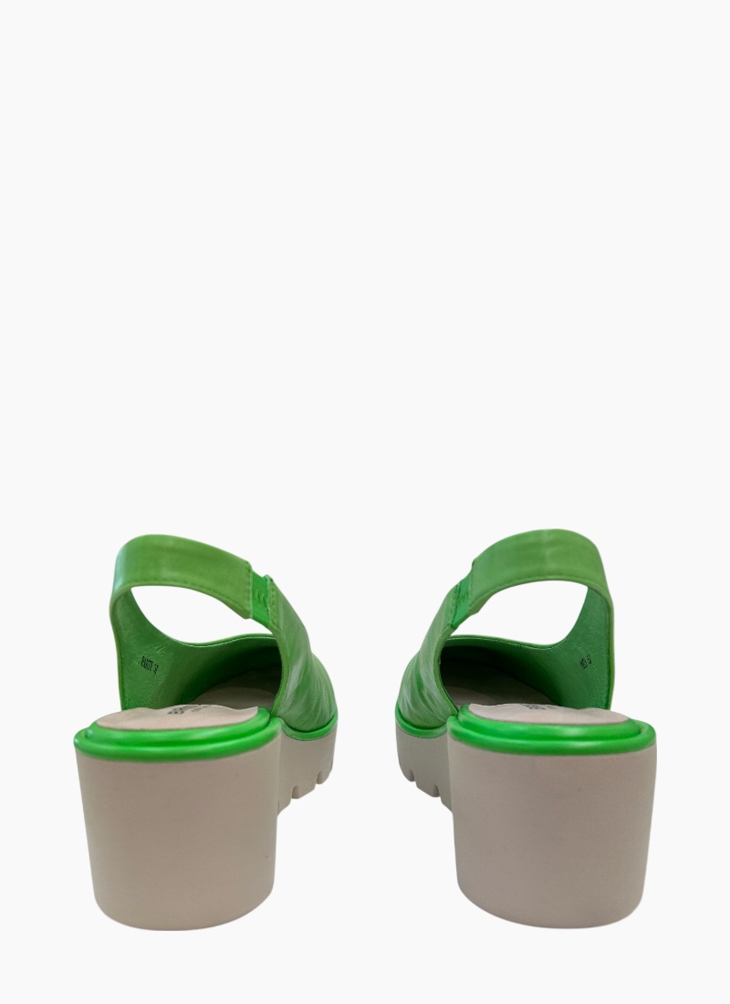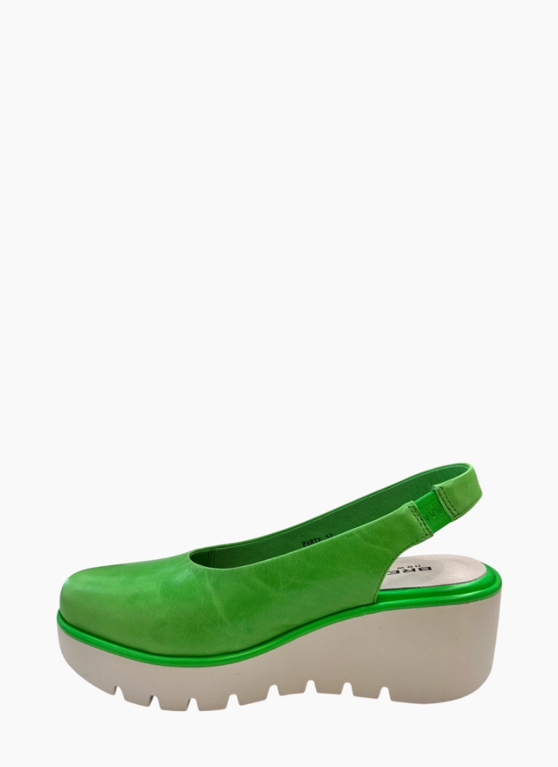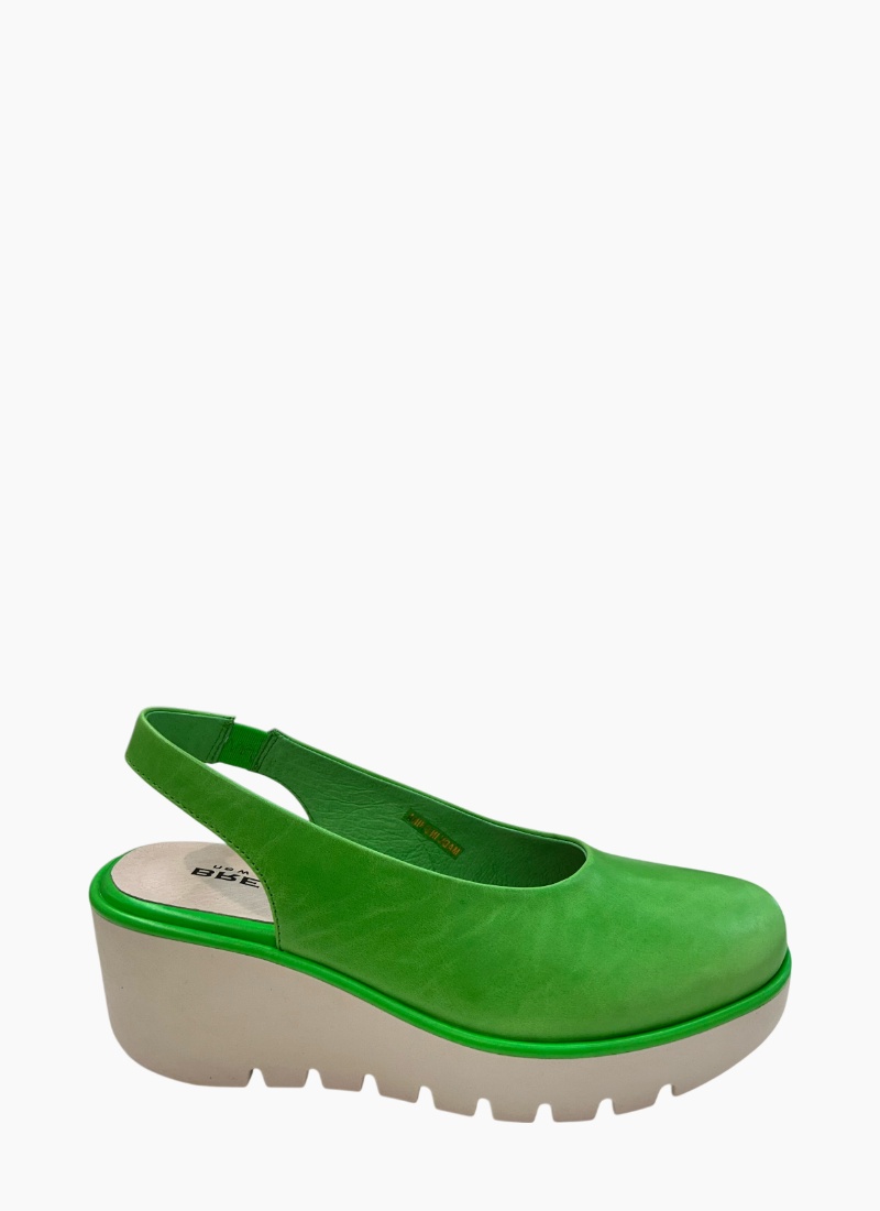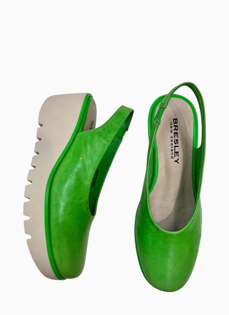 Introducing the Party Wedge Green from Bresley. This statement wedge sandal brings a fresh pop of green to your shoe collection and lifts outfits with confident style.