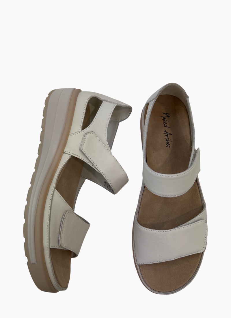 ORTHOTIC FRIENDLYMeet Happy: the sandal that supports every step of your day. With adjustable Velcro straps, a secure back for extra stability, a removable insole, and our signature Naked Arches footbed—comfort and style come together beautifully. Perfect for strolls, travels, and everything in between Leather upper and leather lining Naked Arches footbed covered with suede leather Removable insole attached with velcro Synthetic sole measures 2cm at forefoot to 4cm at heel.