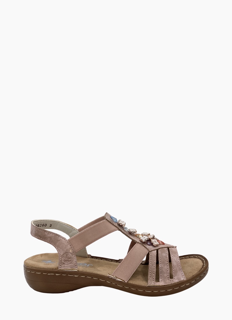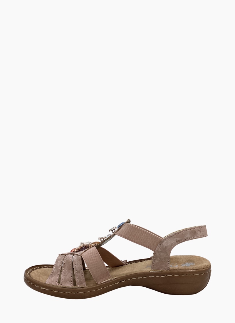 Introducing the Rieker 60855-31 sandal. This inviting piece from Rieker blends relaxed comfort with feminine detail in a soft blush pink.