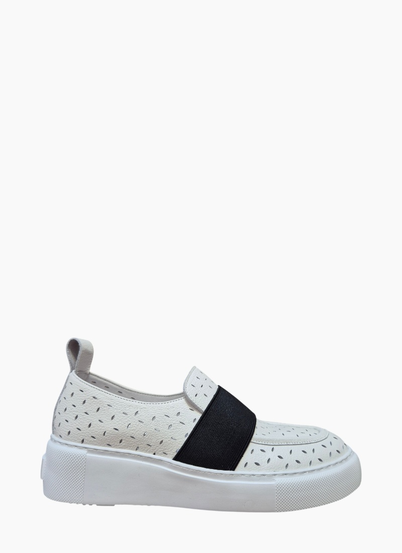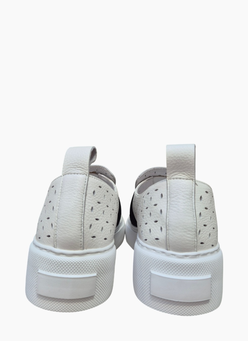 • Clean white upper with perforated accents and stacked heel design looks super styley!