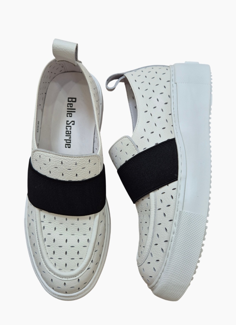 Introducing the Rylan Sneaker in White/Black from Belle Scarpe. This modern sneaker pairs minimalist design with elevated detailing for a refined everyday statement.
