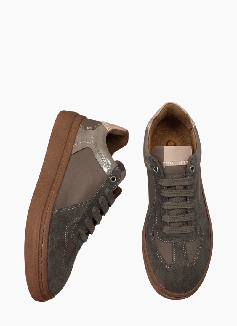 Meet Eslyn, a sneaker styled designed to elevate everyday wear. Featuring a premium leather and suede upper, Eslyn showcases beautifully balanced contrasting colour panels for a standout look. Detailed feature stitching adds a refined finish, while the versatile design pairs effortlessly with any outfit. Eslyn is the perfect blend of style, comfort and modern appeal. Leather/Suede Upper Leather Lining Thermo Sole Removable Leather Insole Orthotic friendly Lace Ups Made in Turkey Material: Suede and leather