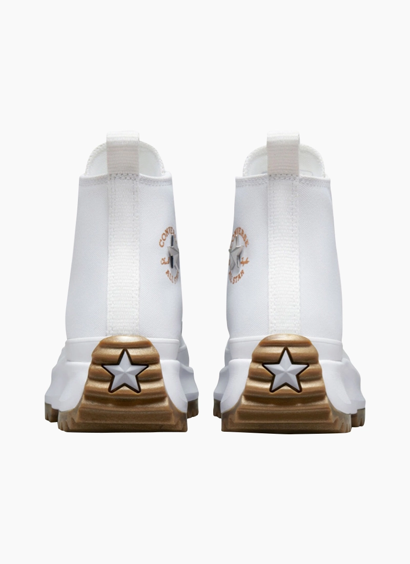A future-forward take on classic Chucks, the Run Star Hike has become a fan-favorite for a reason. It mixes the iconic design elements you know and love with a lightweight, molded platform and jagged, saw-tooth outsoles. This edition takes it even further, with pearlized rubber, gold foil details, and a metal-studded Chuck Taylor All Star patch.