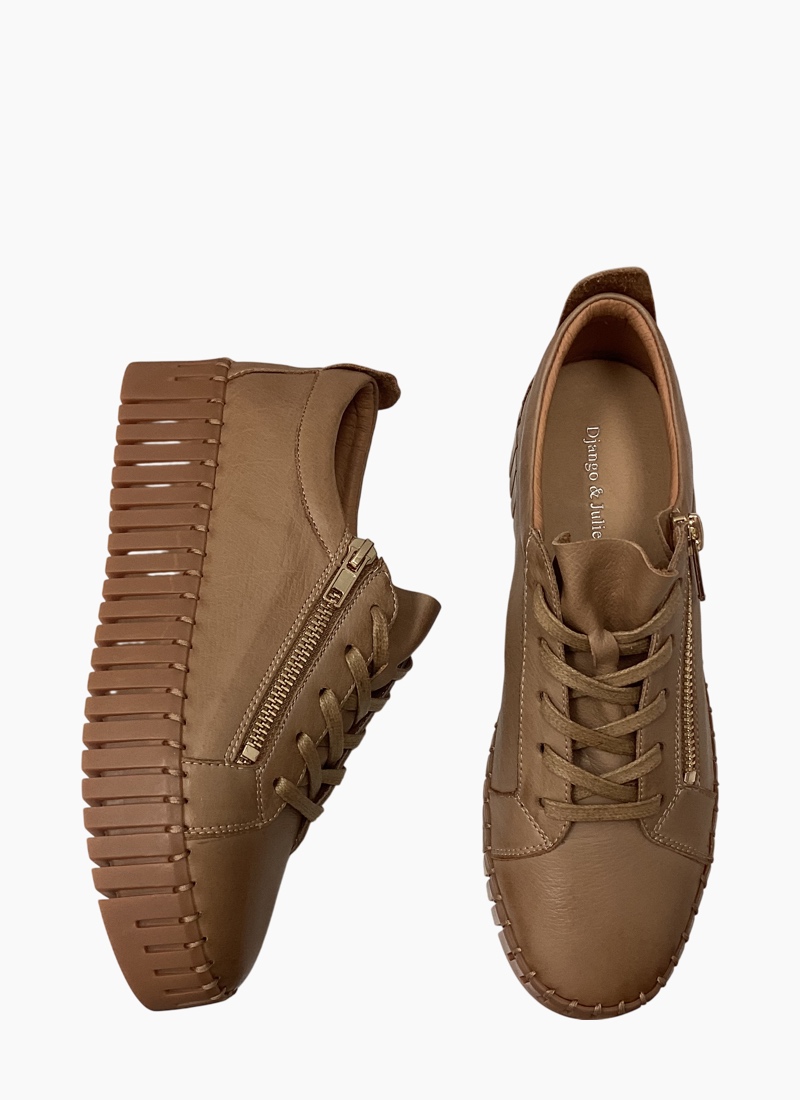 Add a statement finish to your casual outfits with these lace-up sneakers from Django & Juliette. Set on bold cleated creeper soles for a nod to ’90s style, BUMP features a classic tennis-inspired upper with an edgy zip detail.
