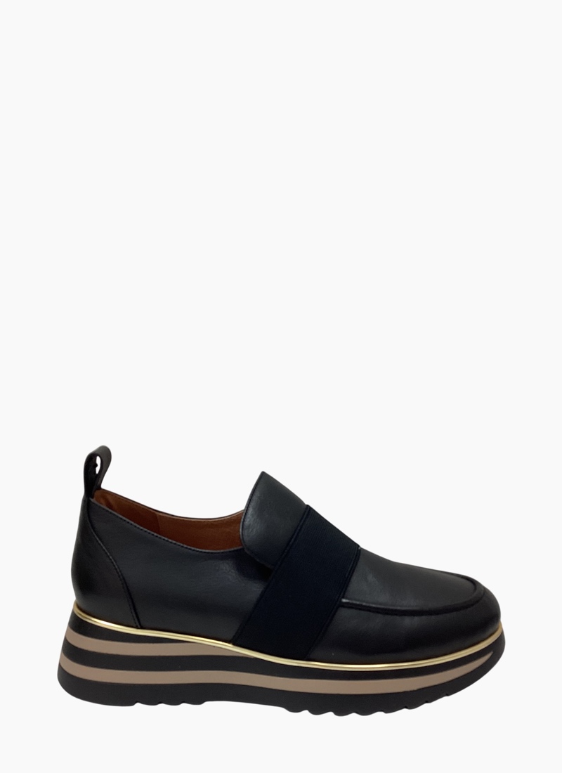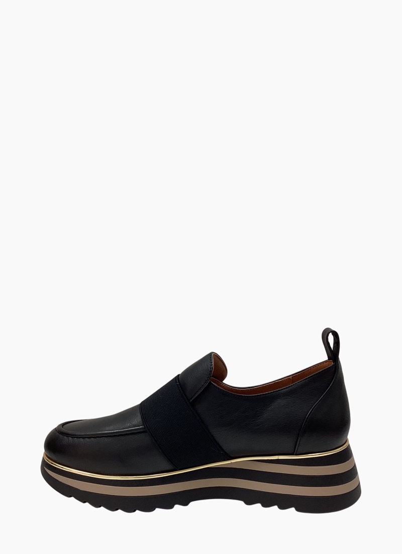 - Premium black leather upper with an elasticised vamp for easy slip-on wear
