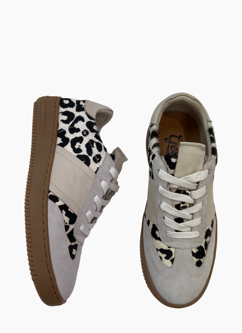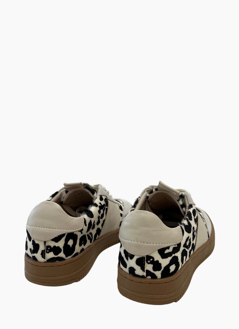 Introducing the Oxen Sneaker Leopard/Egret from Gelato. A statement low-top sneaker that pairs bold leopard-print panels with an egret leather silhouette for everyday polish.