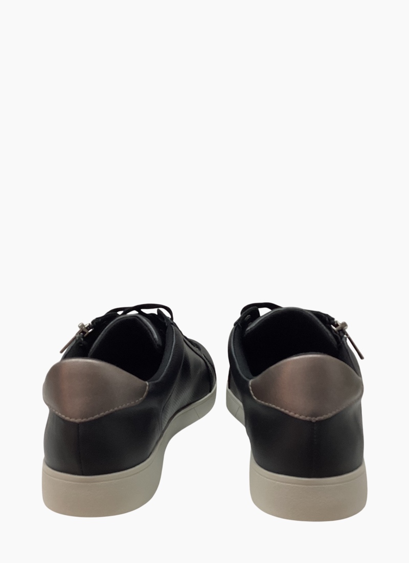 Treat your feet this season with Mimosa in a supple, pin punched black leather upper with a gunmetal colour pop on the heel. Comfort is assured with a padded collar while the functional outside zip means the laces are set and forget for added convenience!