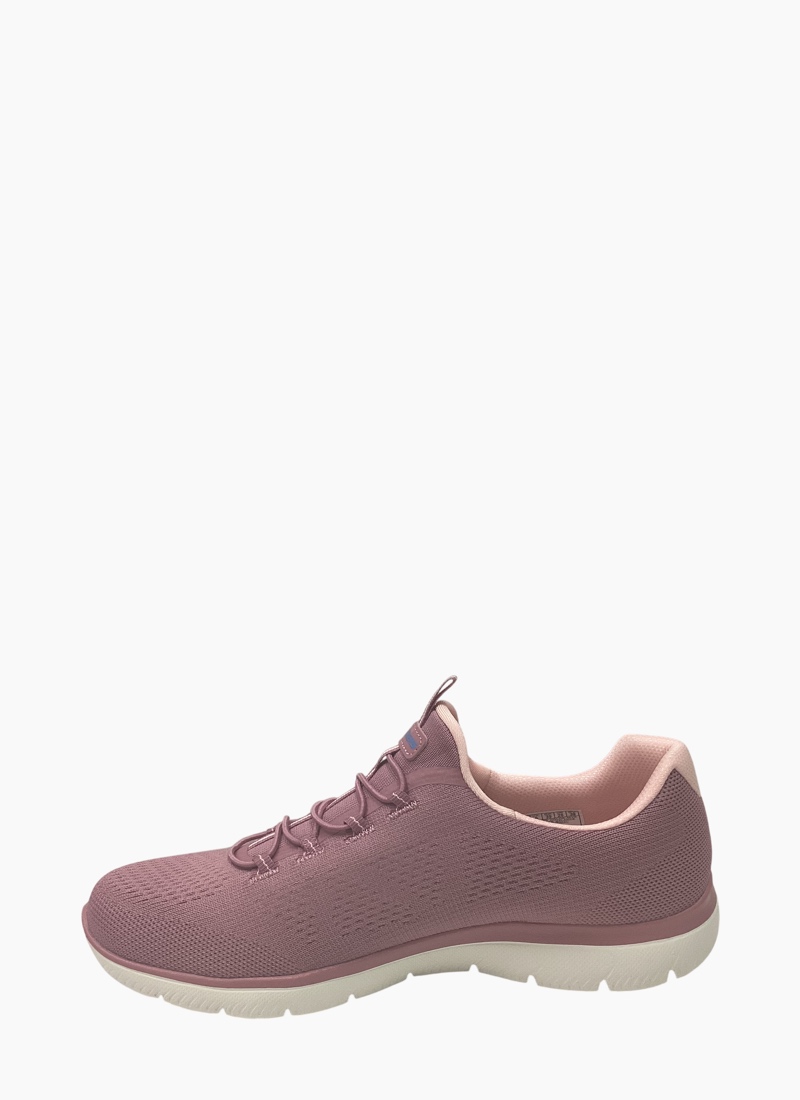 Reach the height of comfort and athletic style with Skechers Summits - Radiant Flow. This easy-on vegan design features an engineered knit upper with a stretch-lace front and a Skechers Memory Foam™ cushioned comfort insole.