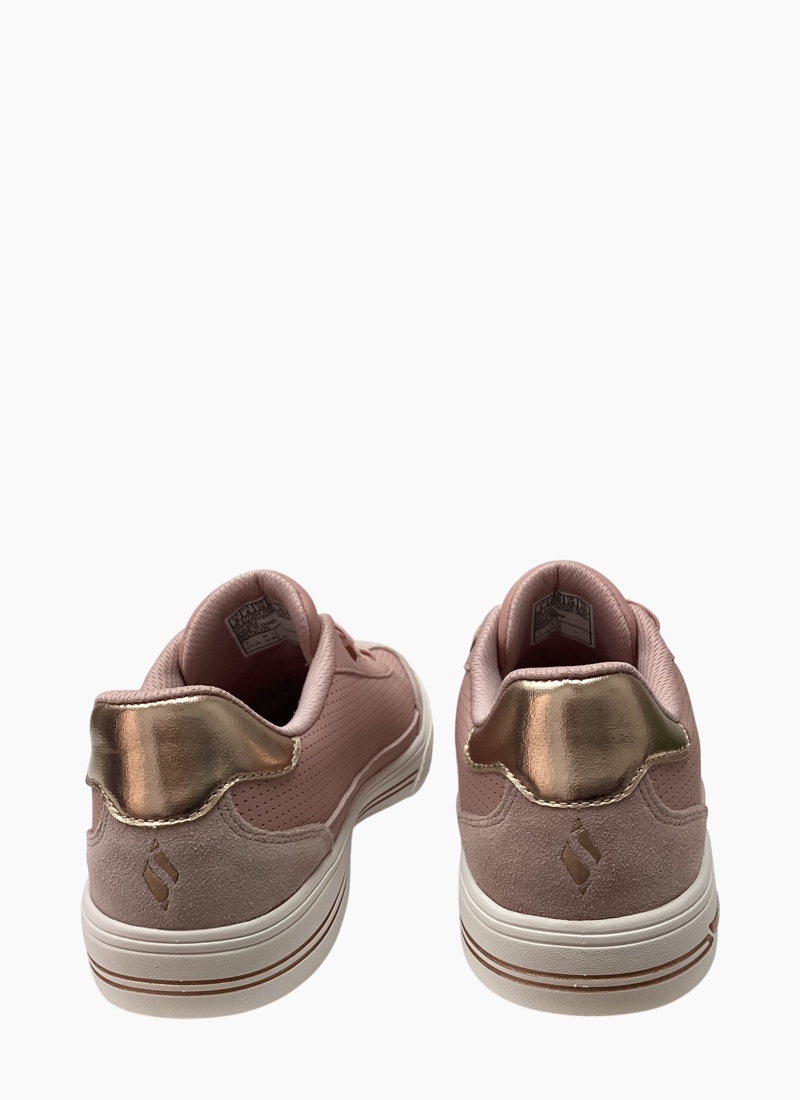 - Perforated duraleather and suede overlay upper with metallic heel detail