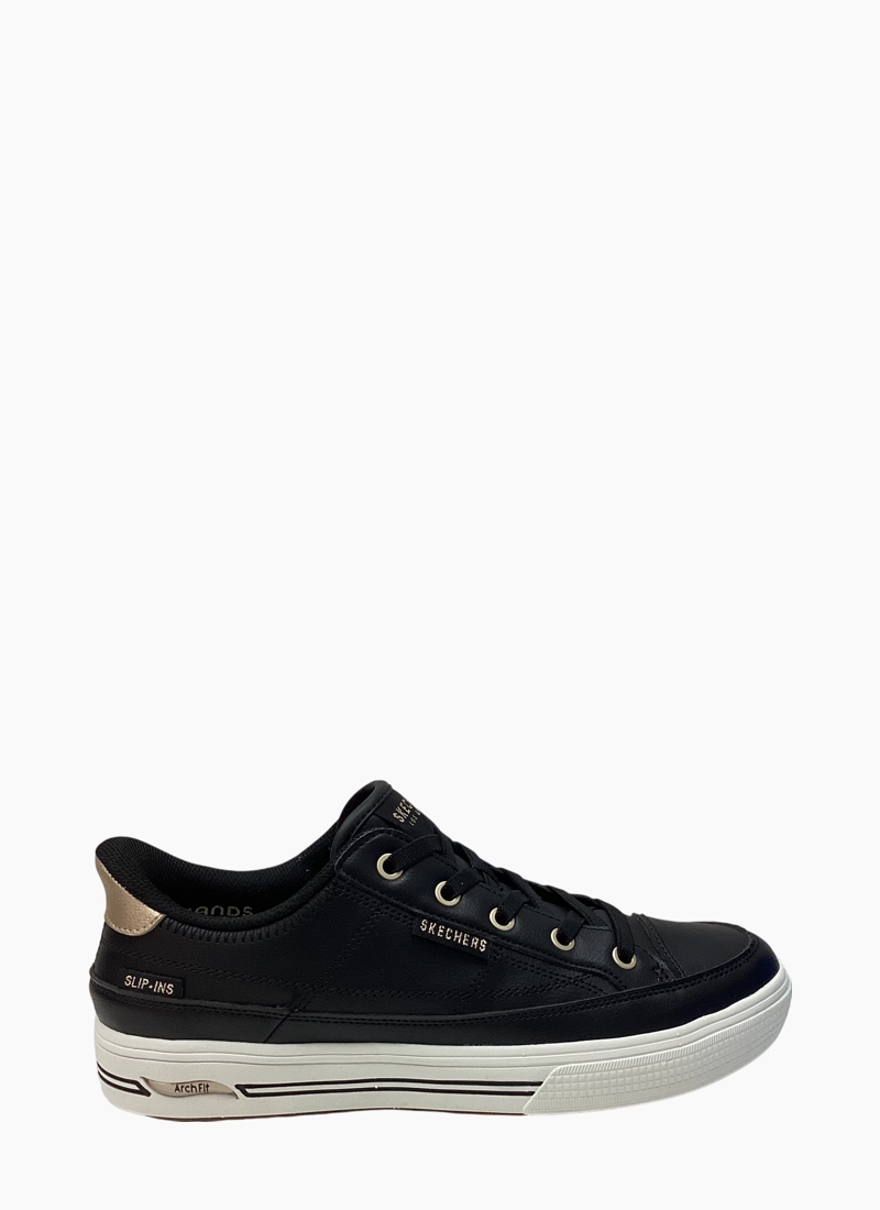 Stroll through the day in amazing cushioned comfort wearing Skechers Street™ Hands Free Slip-ins®: Arch Fit® Arcade - See Ya There. This casual sneaker has been granted the APMA Seal of Acceptance and features a canvas upper with a removable Arch Fit® insole, stretch laces, and a lightweight cushioned midsole.